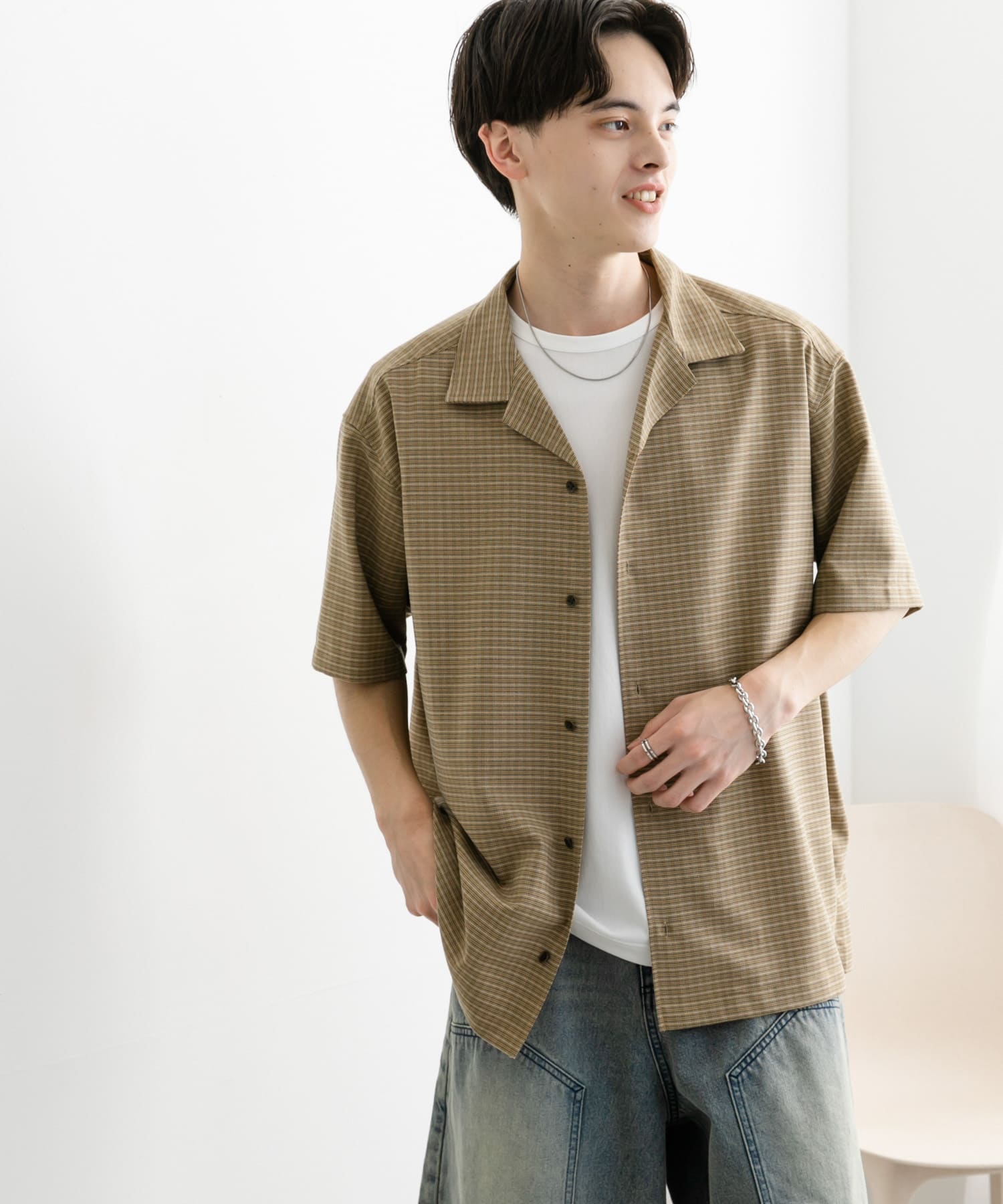 SENSE OF PLACEグレンチェックオープンカラーショートスリーブシャツ- 着用カラー: