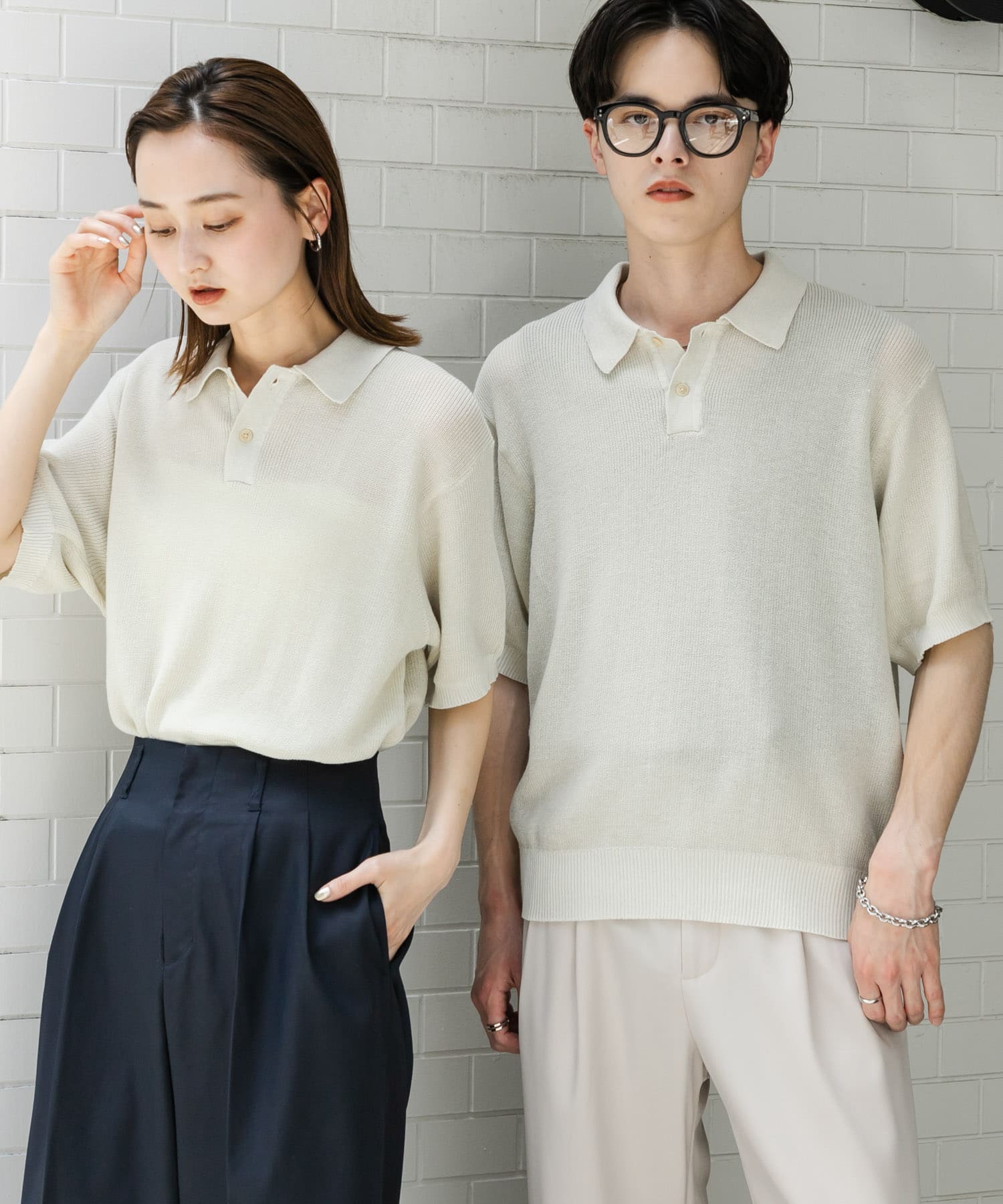 SENSE OF PLACE『一部WEB限定カラー』『ユニセックス』エアリーメランジニットポロシャツ