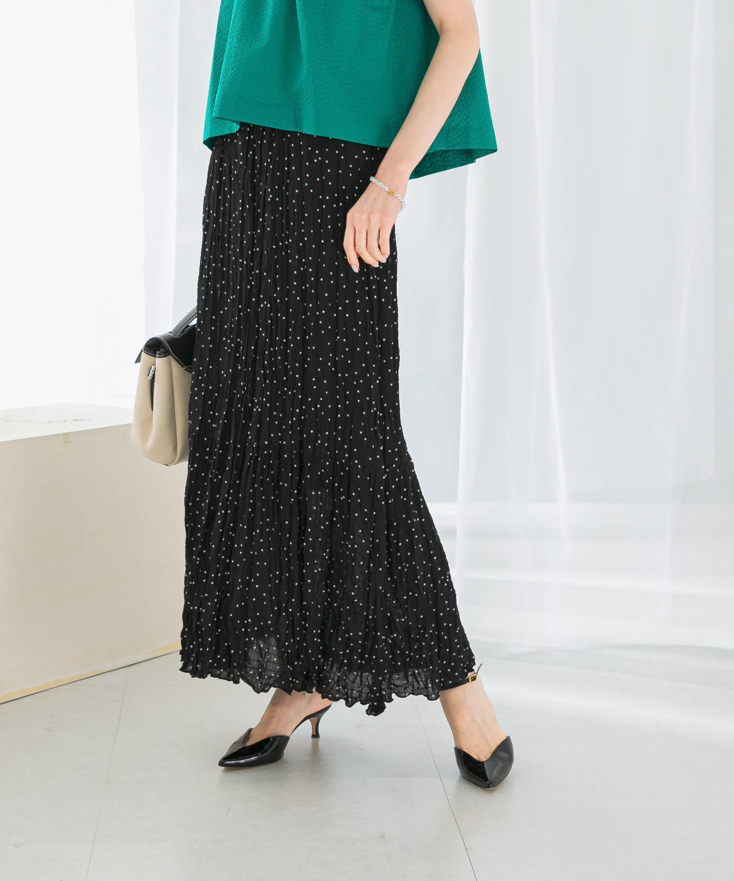 ドットプリーツイージースカート