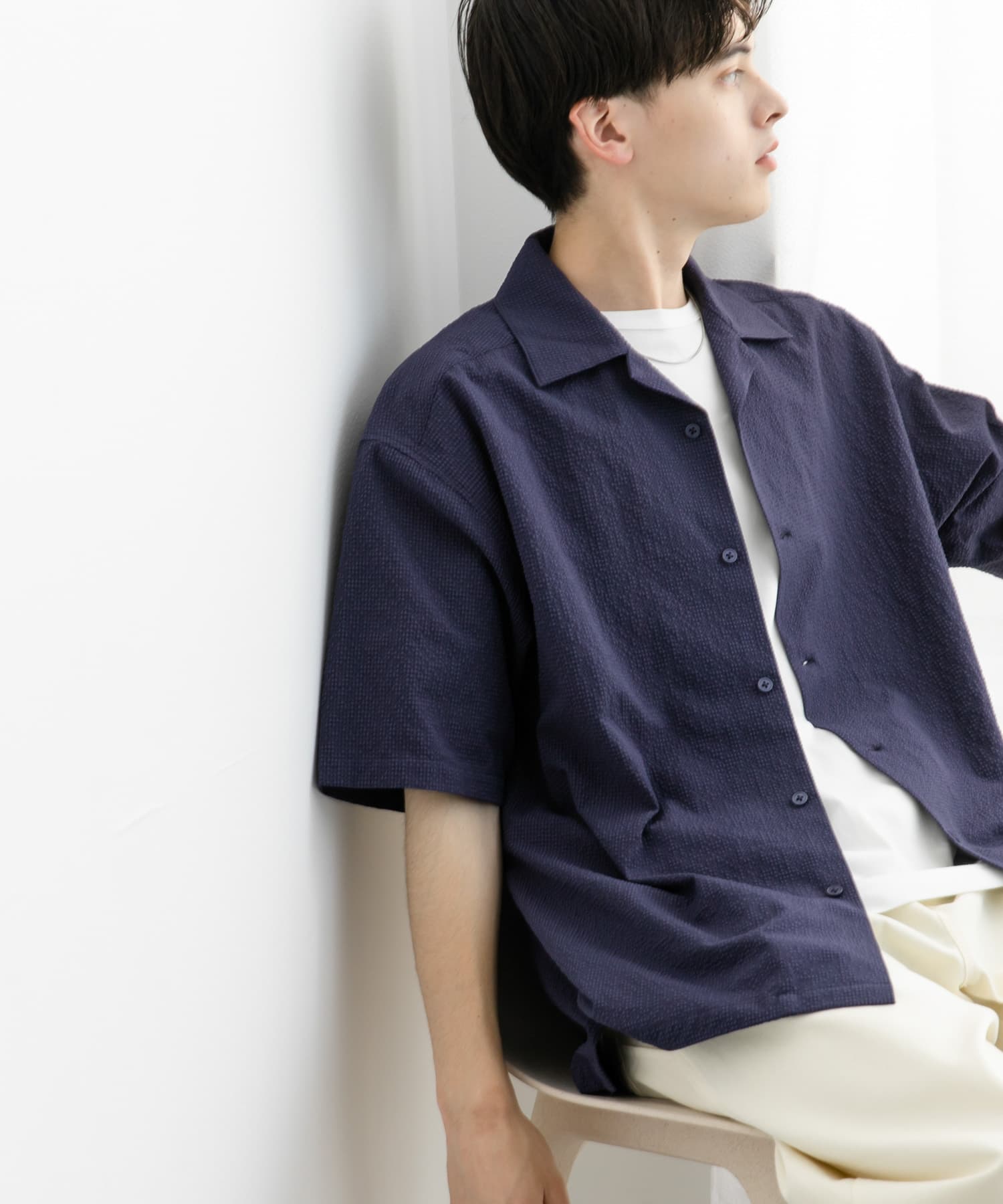 SENSE OF PLACEシアサッカーオープンカラーショートスリーブシャツ- 着用カラー: