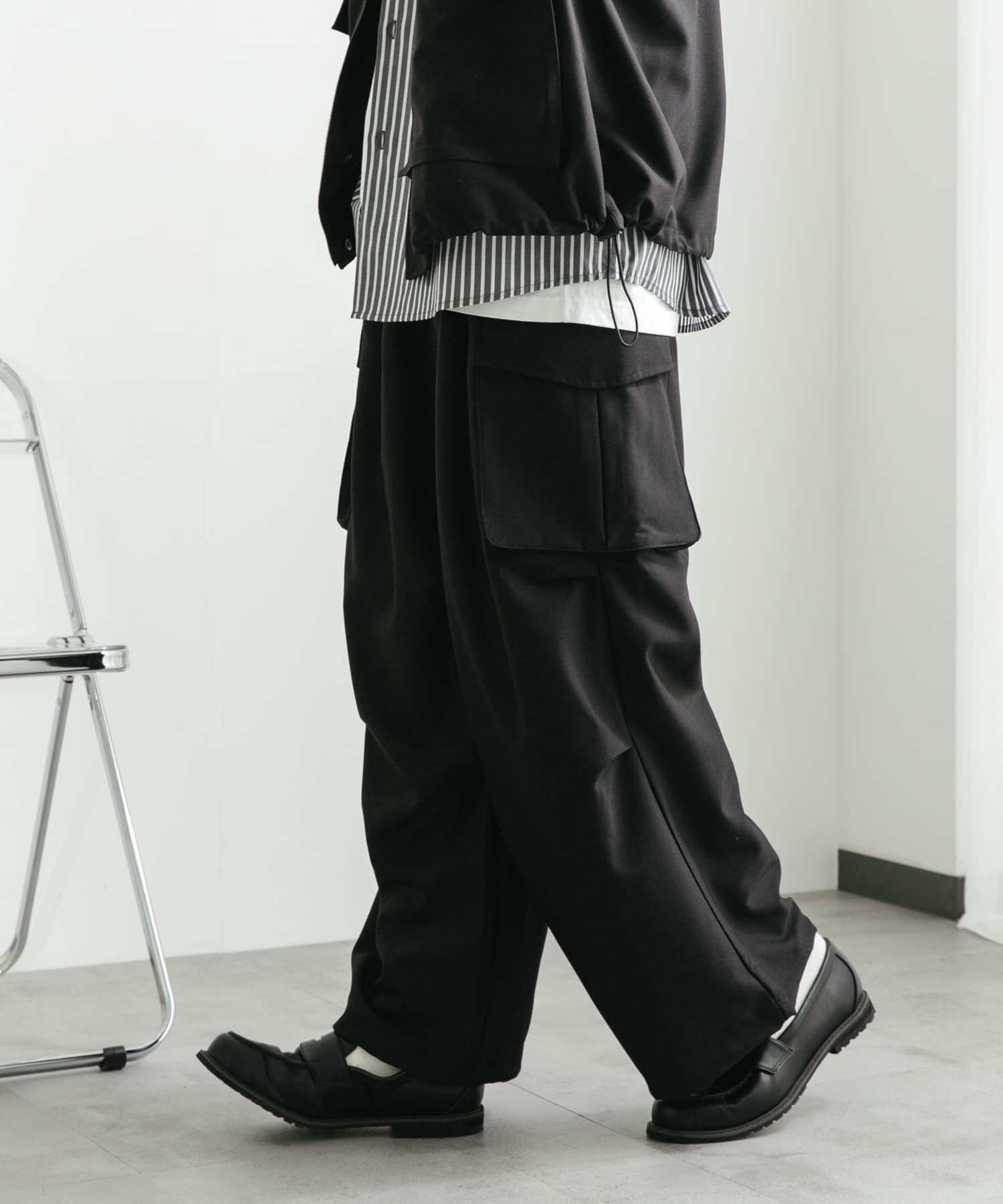 『ユニセックス』『セットアップ対応』ワイドカーゴパンツ
