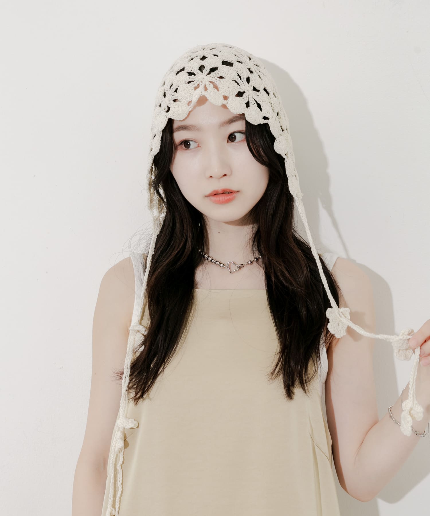 手作り感のあるクロシェ編みの帽子と合わせワントーンでスタイリングしてみました👒