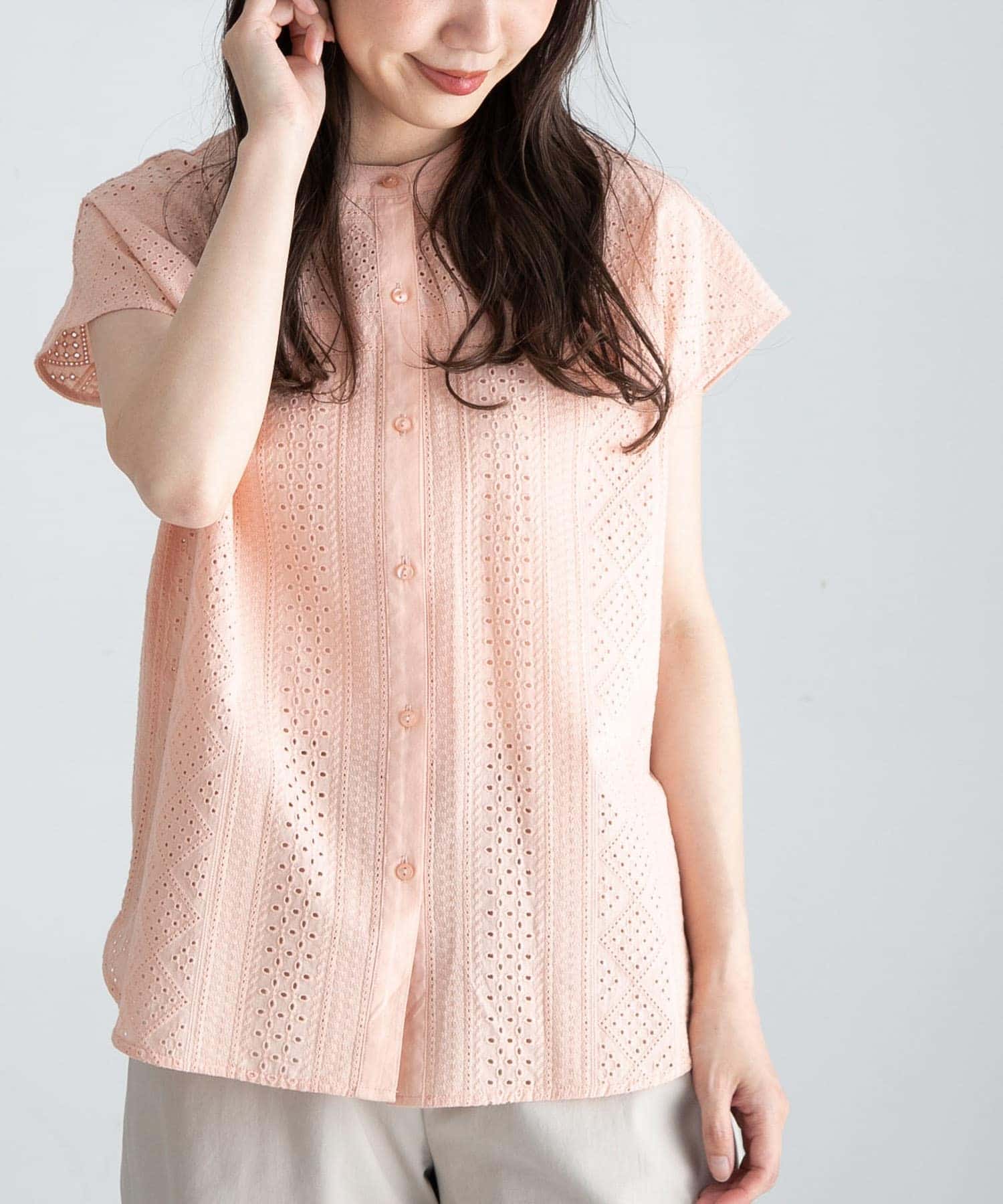 Sonny Label『WEB限定』バンドカラーコットンレースシャツ- カラー: