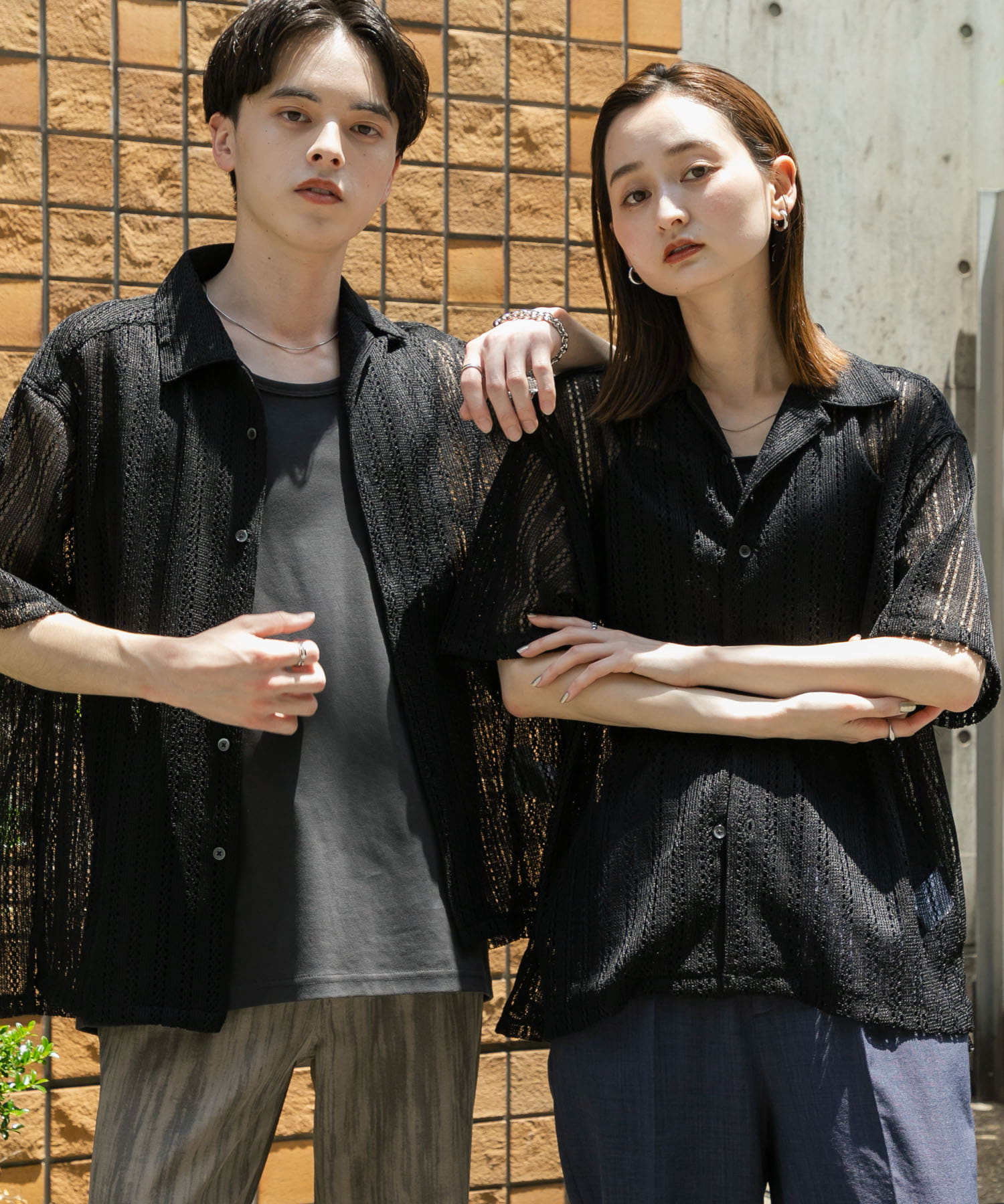 SENSE OF PLACE『ユニセックス』アソートレースオープンカラーショートスリーブシャツ- カラー: