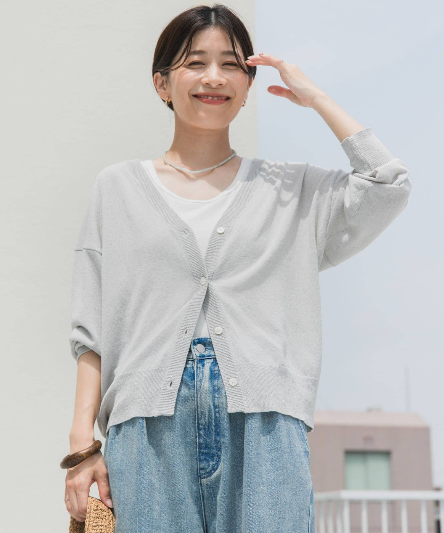 カーディガンはひやサラクールなので肌あたりもサラッとしており夏でも快適に羽織れます◎