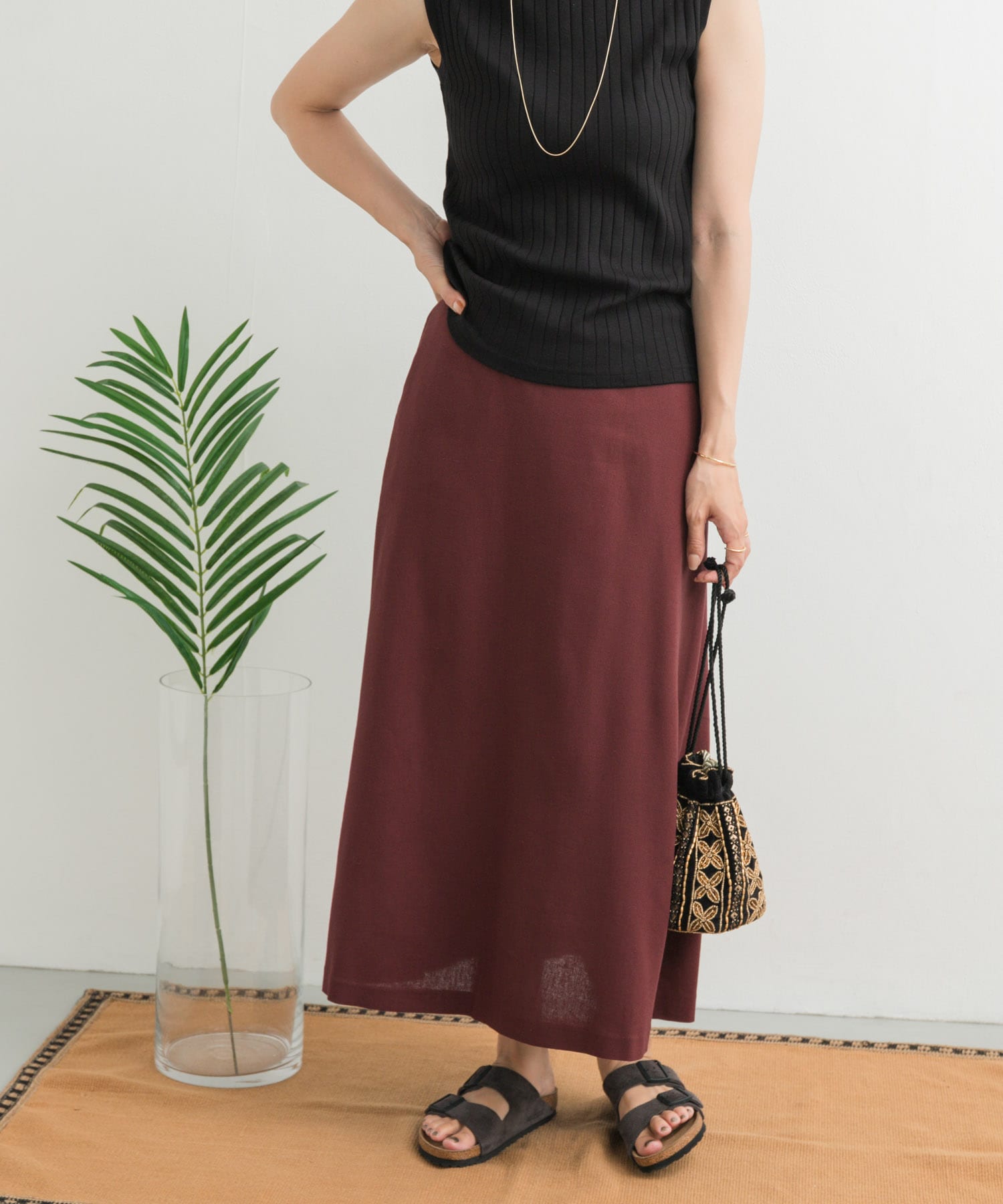 麻混レーヨンフレアスカート
