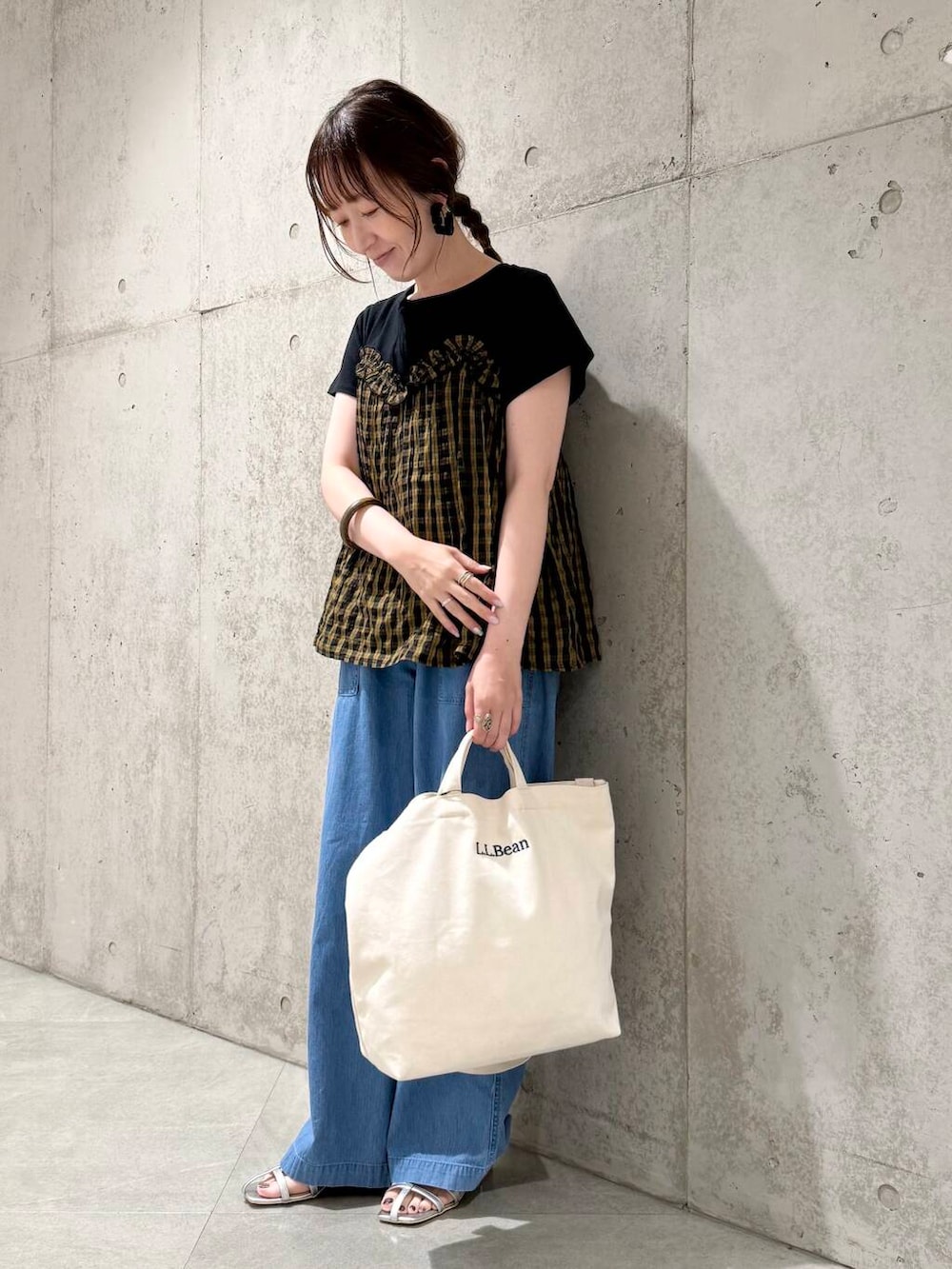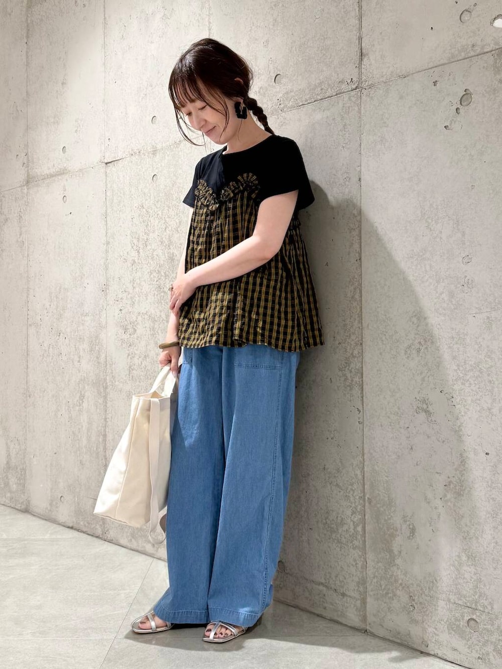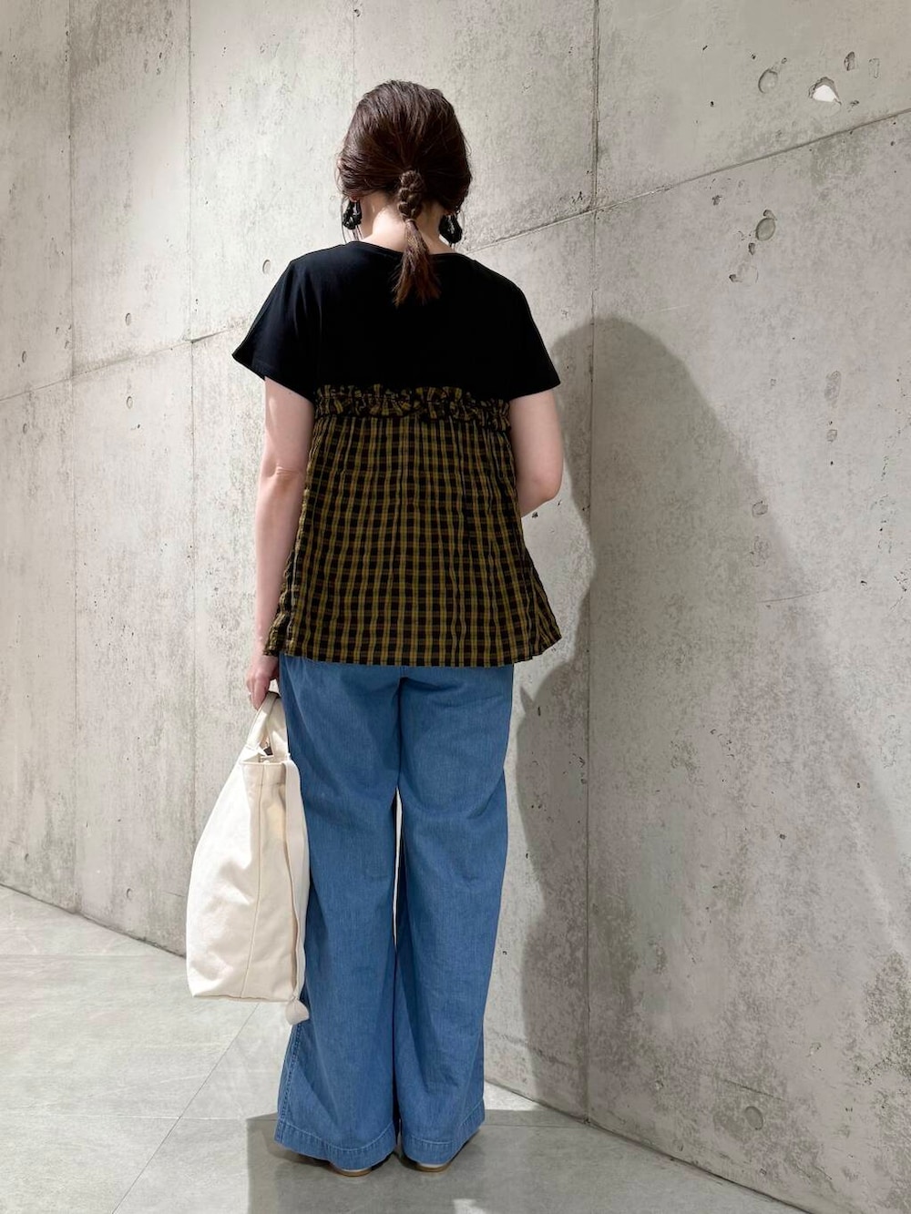 今回は、デニムのイージーパンツと合わせた、カジュアルコーディネートです。