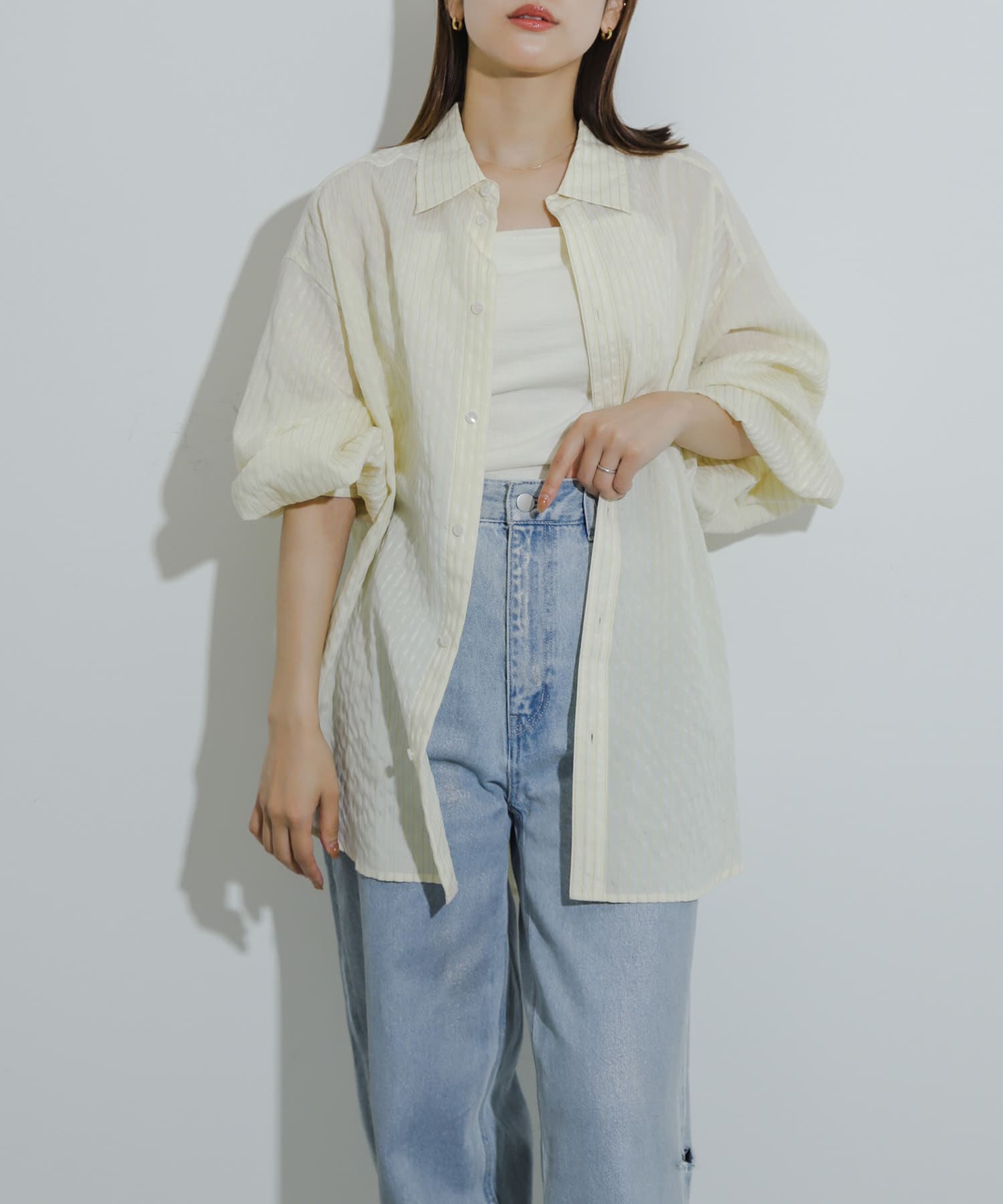 黄色のシャツを使った淡色カジュアルコーデになります💛🪽夏らしく麦バックを合わせてみました🌞
