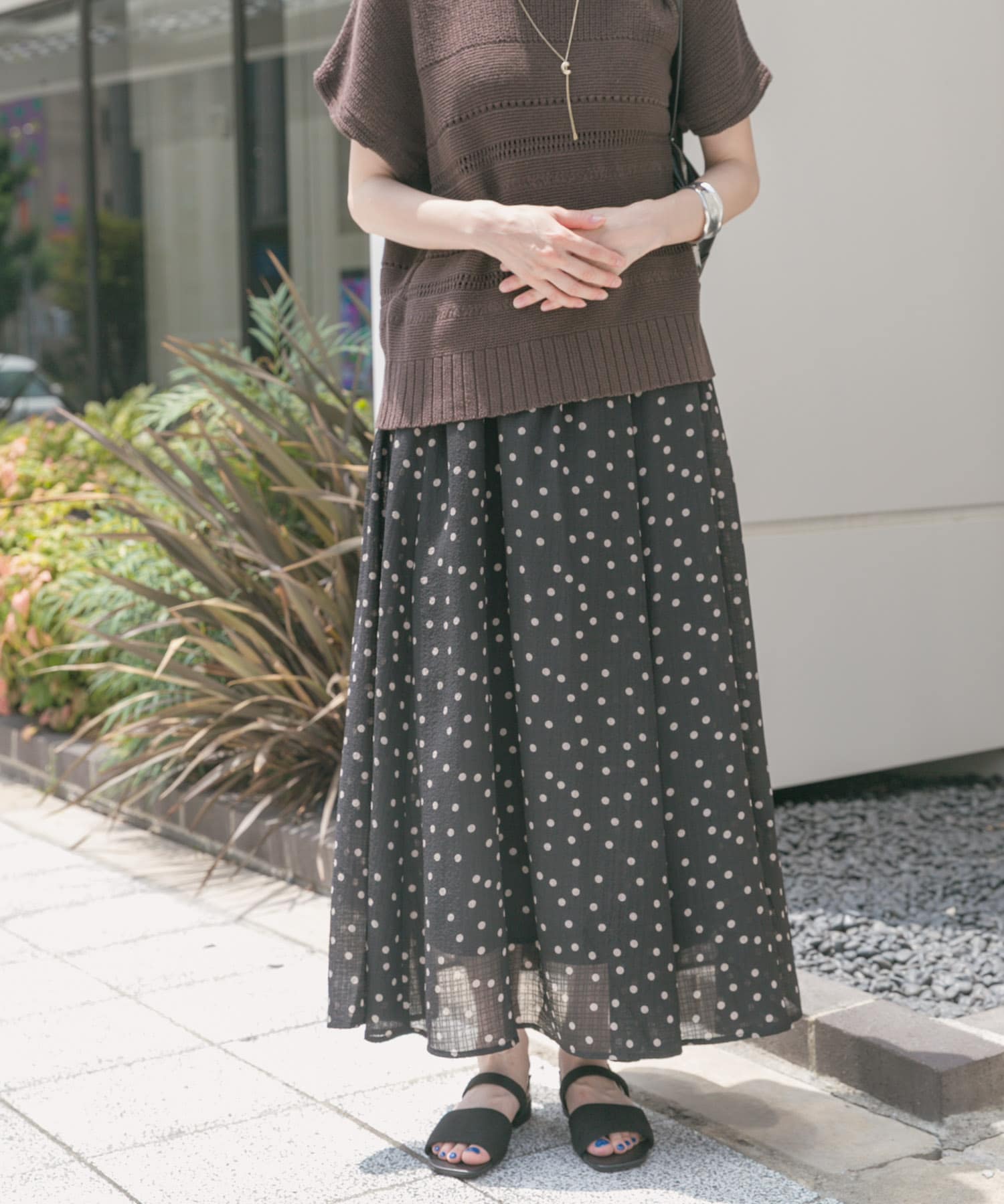 夏に身につけたくなるドットのスカート!水玉がベージュっぽい色味なので、ブラウスと合わせれば綺麗めに、Tシャツと合わせてカジュアルに。幅広くお使いいただけると思います☺️