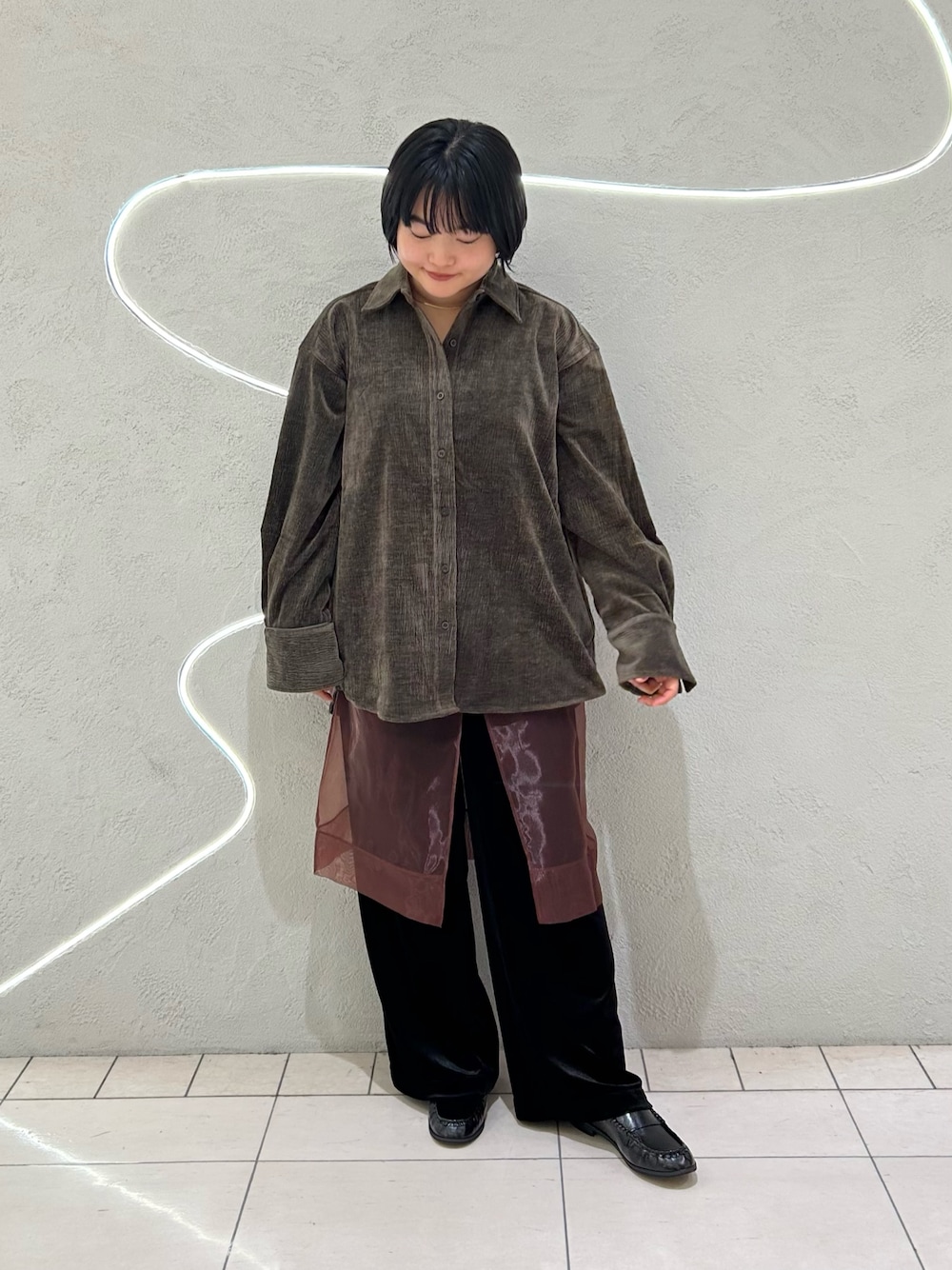 花柄のチノパンツは膝のタックが印象的で、KBF得意のハイウエストデザイン、裾も長さ調節できて154cmの私でもストレスなく履けました。