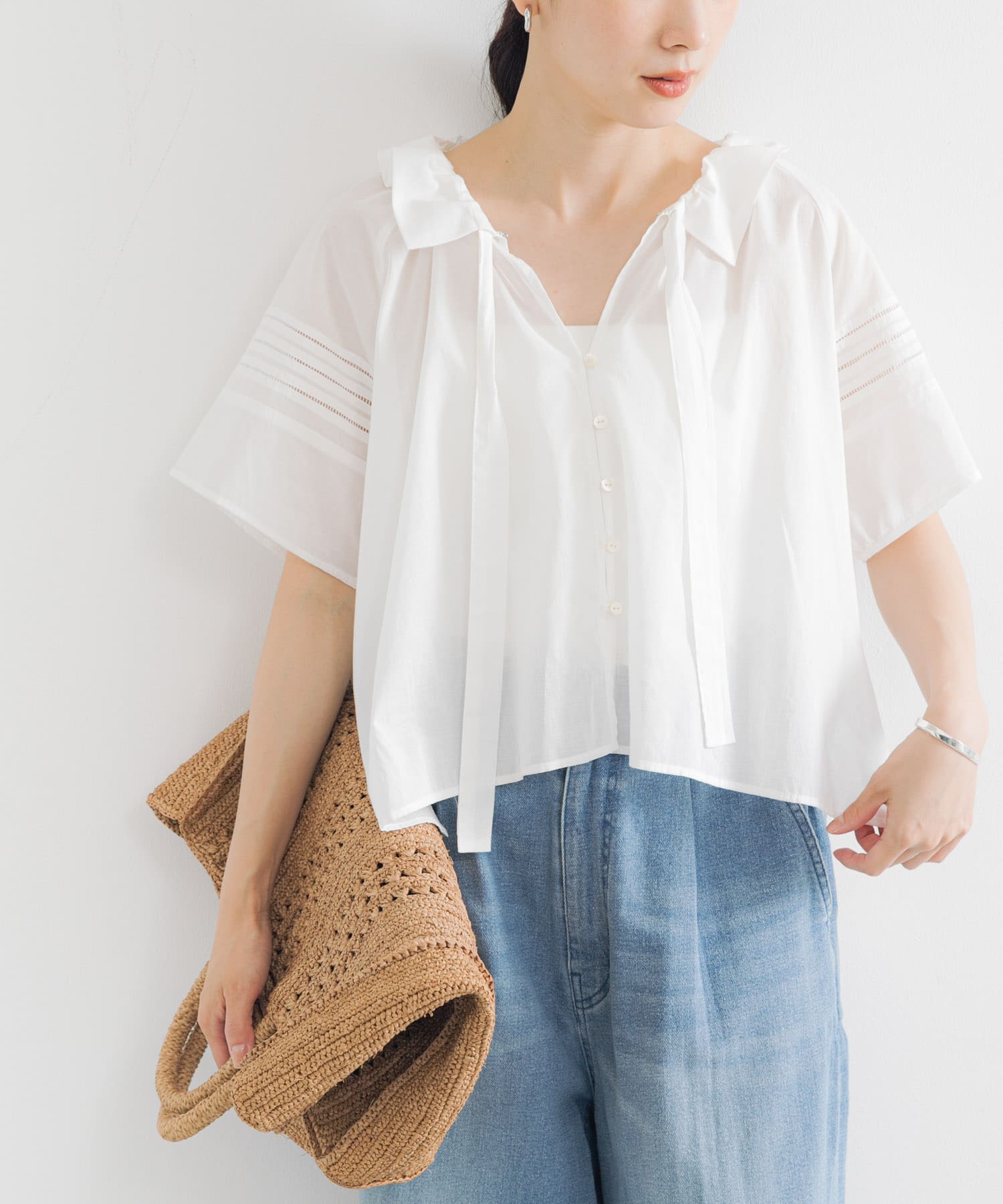 URBAN RESEARCHハーフスリーブフリルカラーブラウス- カラー: