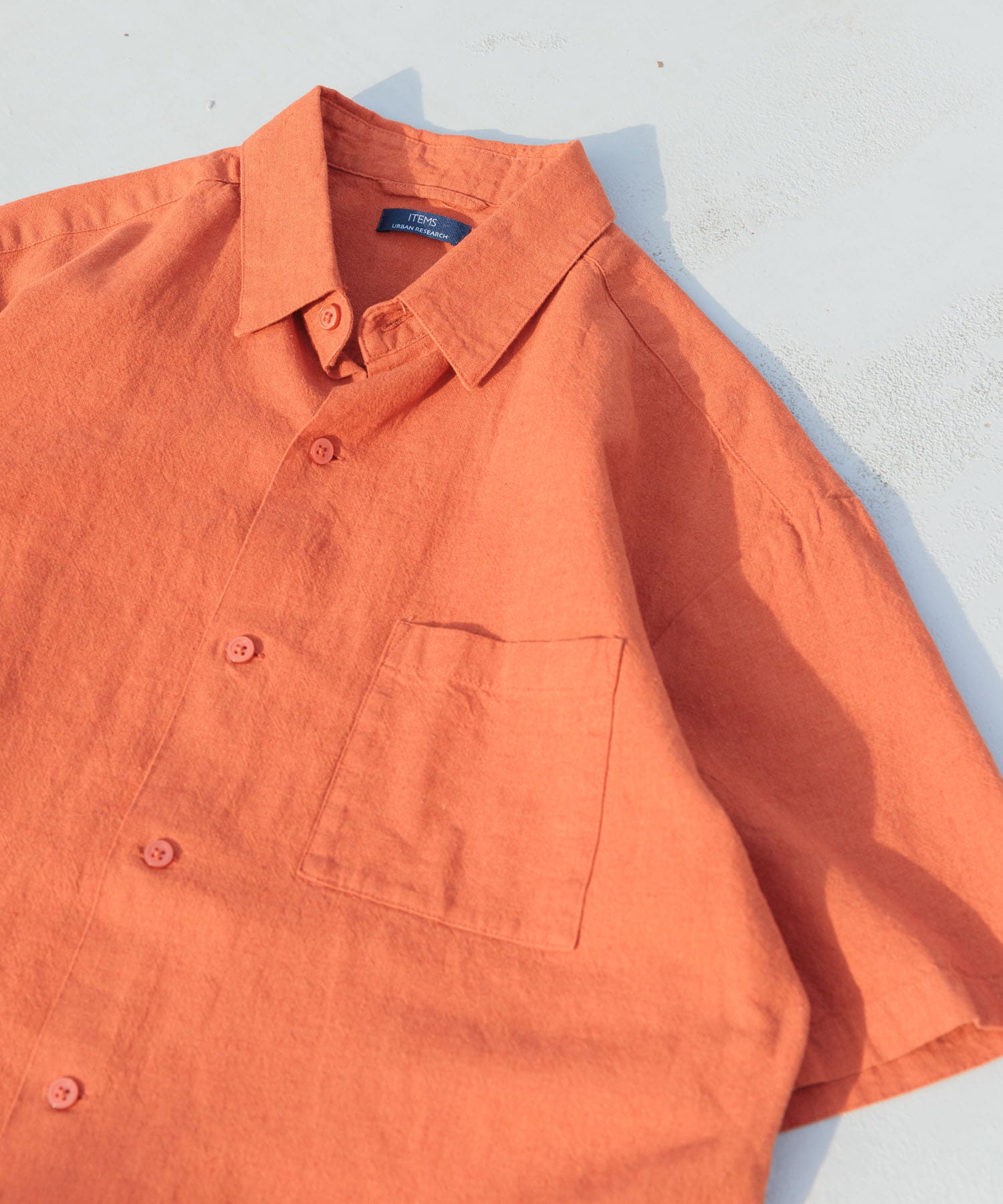ITEMS『セットアップ対応』天然素材リネンコットンレギュラーカラー半袖シャツ