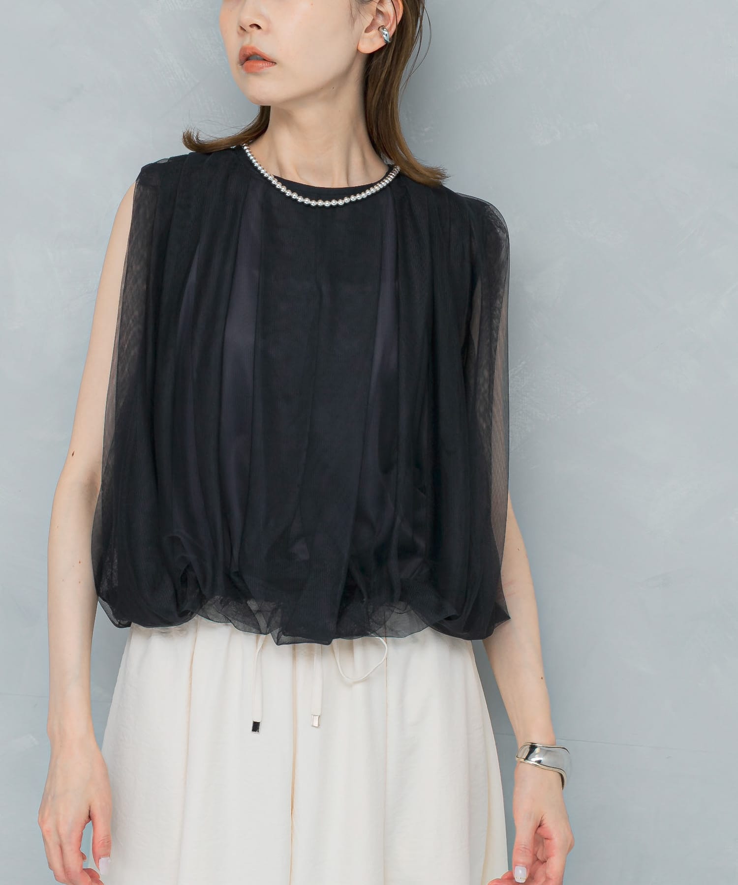 チュール素材でふわっとしたシルエットが可愛いです!二の腕も程よく隠れるのでとても着やすかったです。