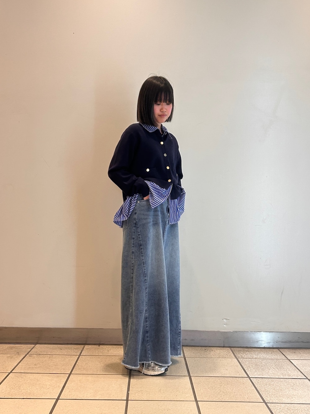 ボトムにはレーヨンデニムパンツ!レーヨンが入っているので生地が柔らかくデニムの風合いを楽しむデザインになります!