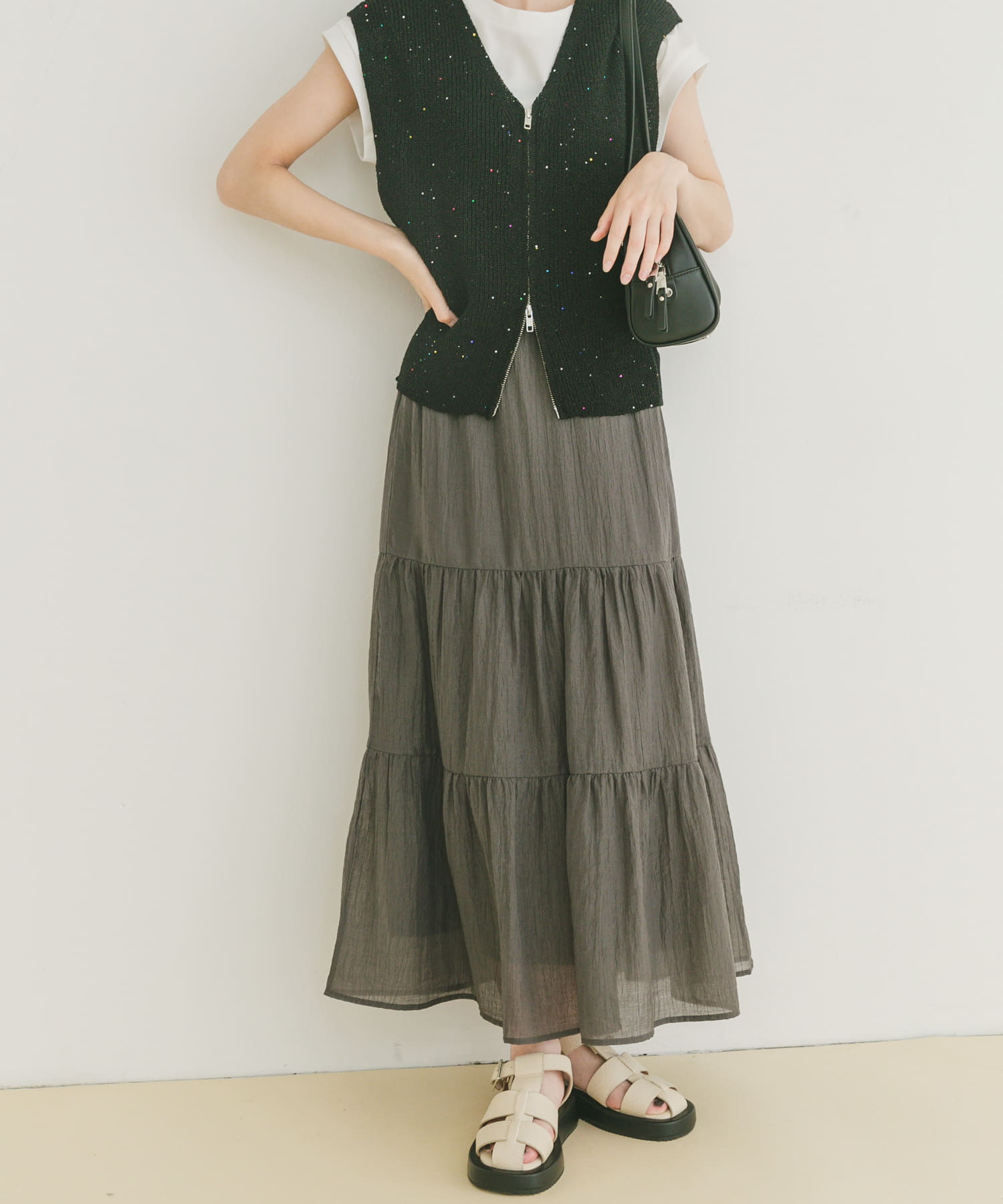 キャミワンピースだけじゃ露出が気になる方はベストを合わせたりするとあまり気になりません!