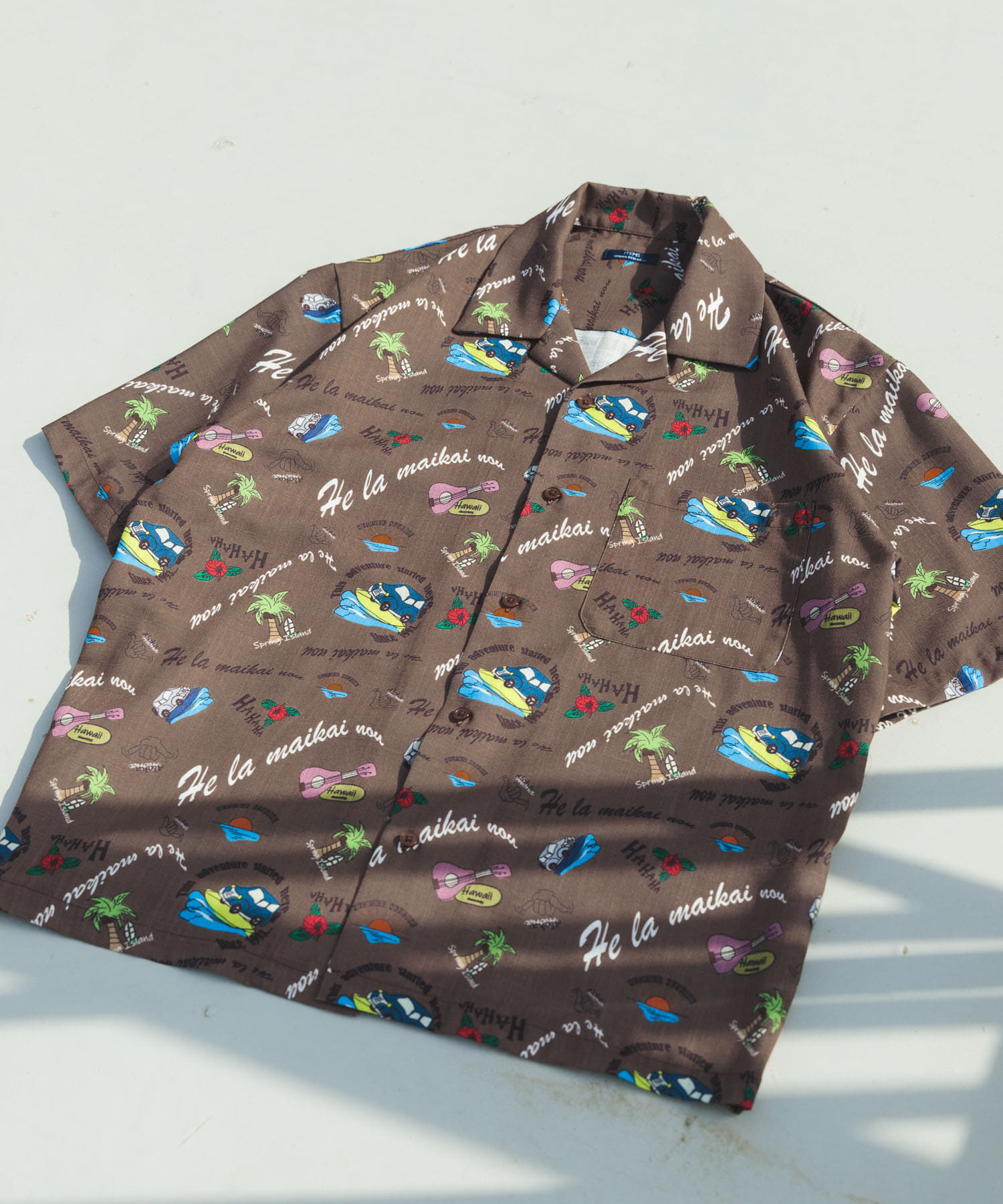 ITEMSアロハプリントオープンカラー半袖シャツ