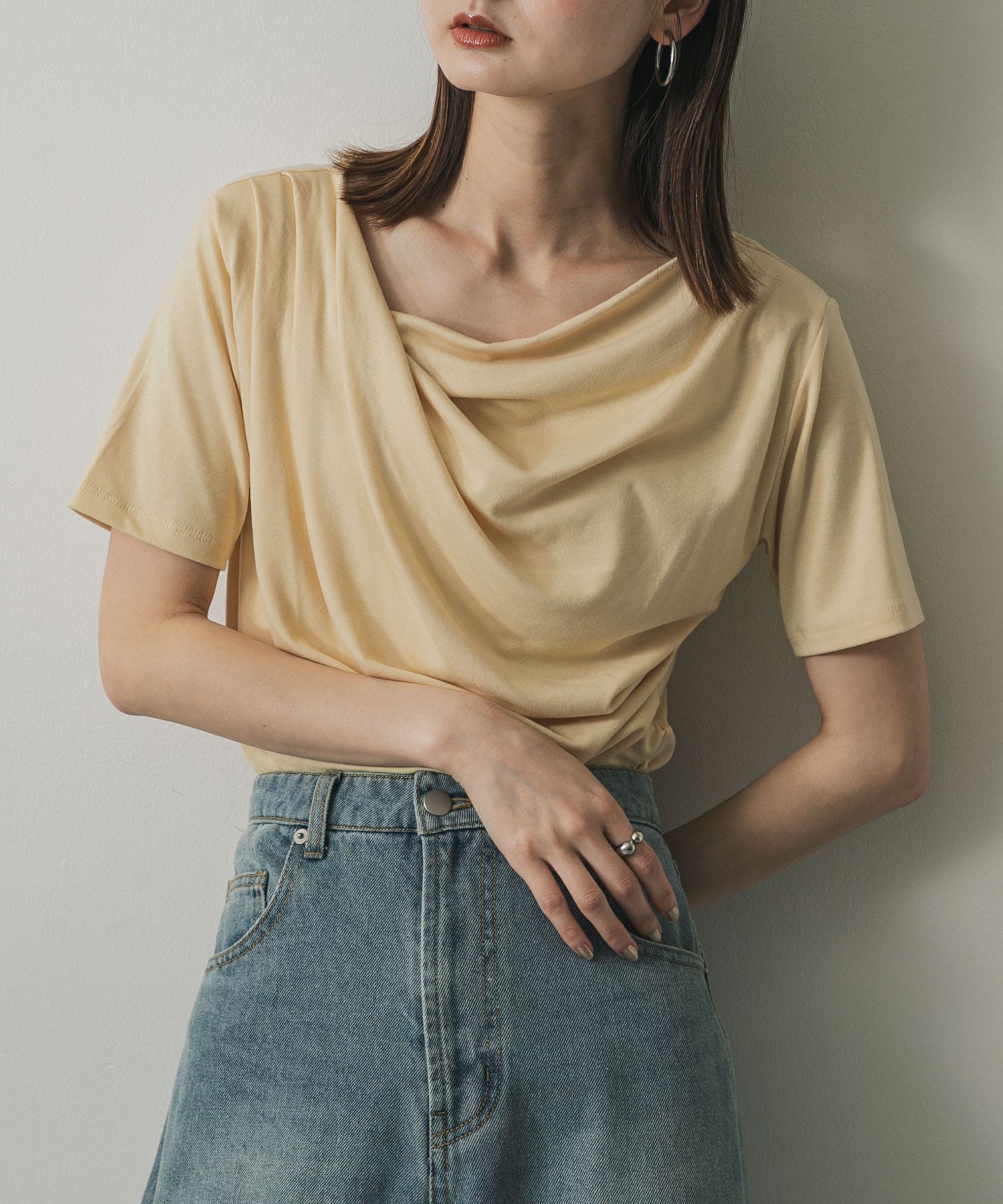 SENSE OF PLACEアシメドレープトップ(半袖)- 着用カラー: