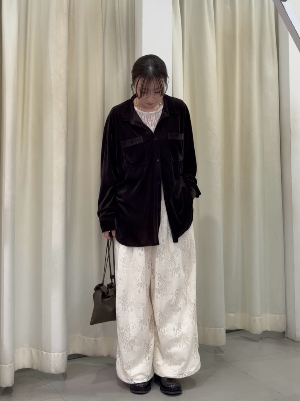 落ち感のあるベロアパンツで