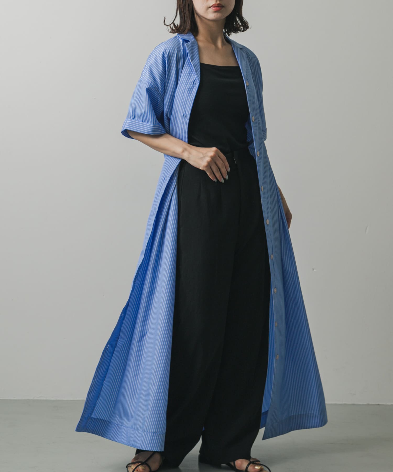 パキッとしたブルーシャツワンピースは写真映え間違いなし☺️✨洋画のヒロインのような気分になれちゃいます!🥹🤣✨