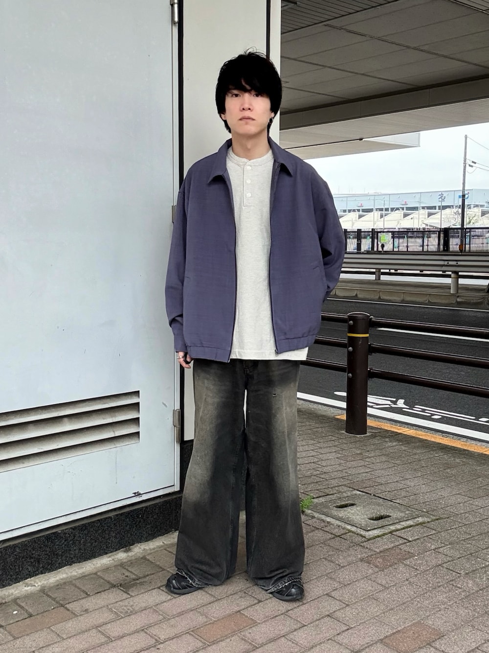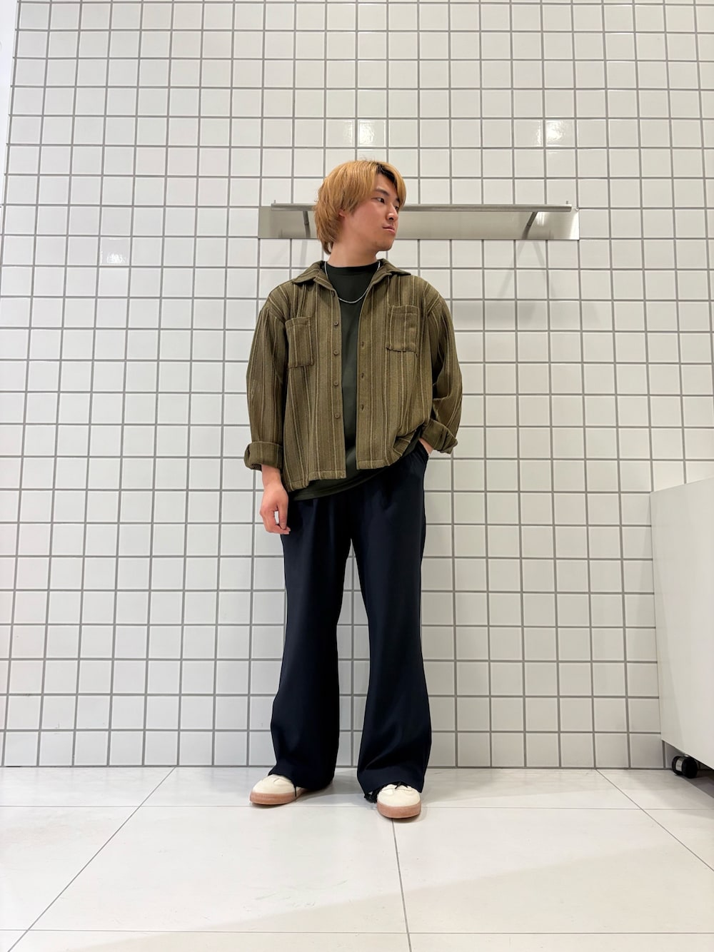 シャツはプルオーバー型で他羽織りシャツとは違った見せ方ができるので、インナーはタンクトップはもちろんグラフィックを少し見せるようなレイヤードもおすすめです○