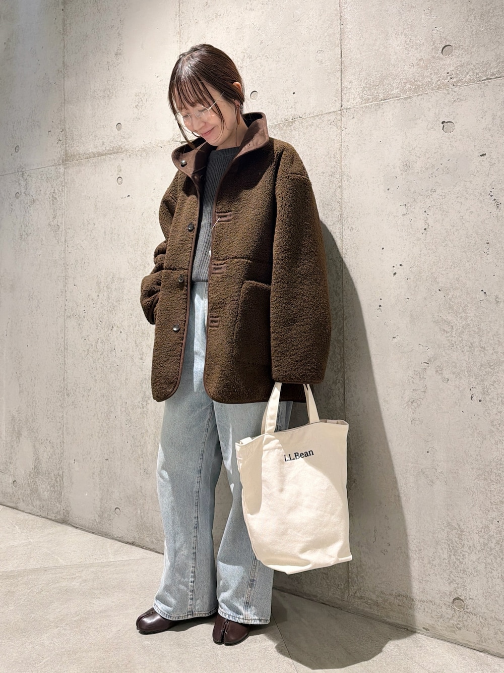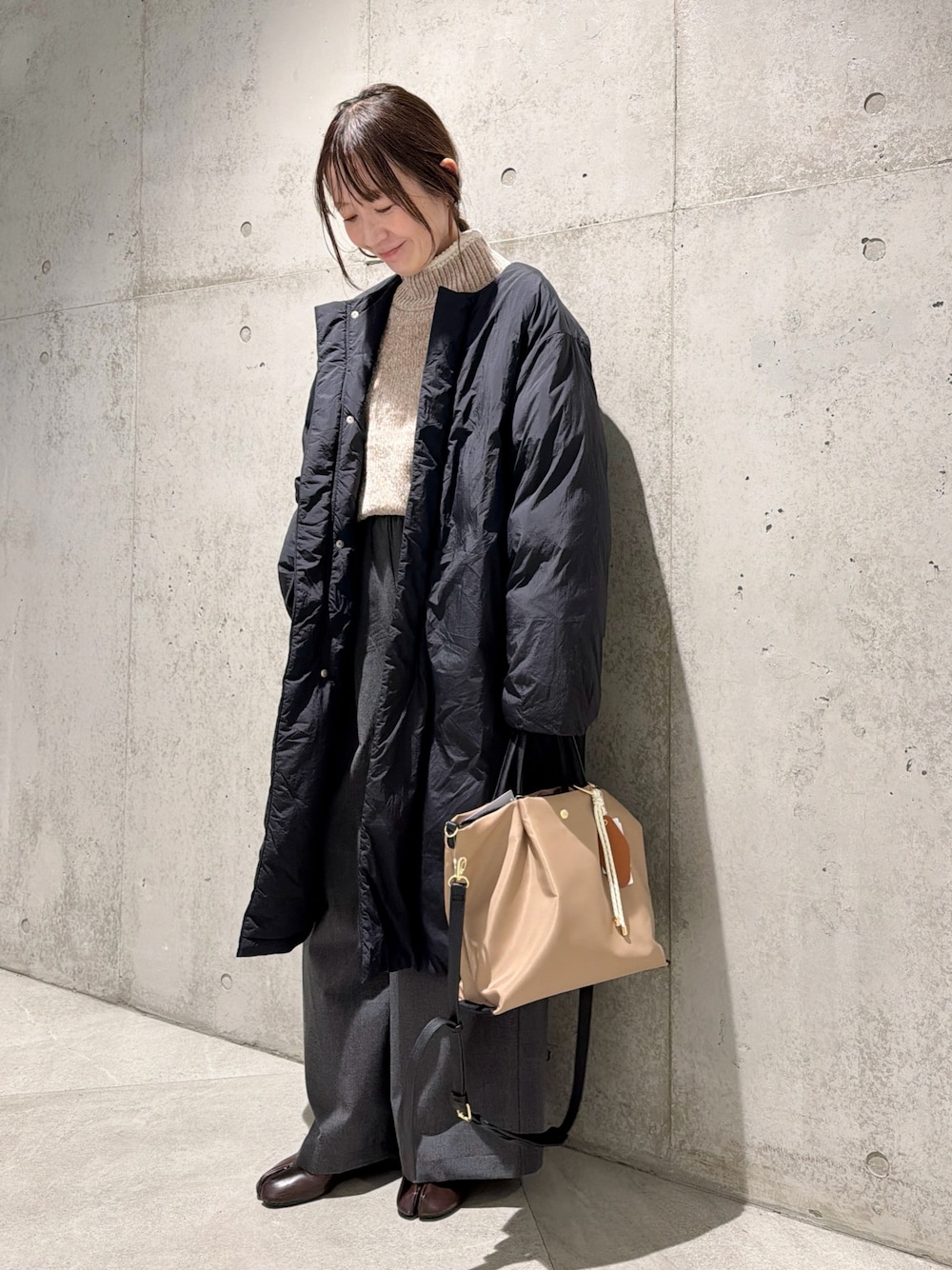 今回は、イージーパンツと合わせた、きれいめコーディネートにしてみました。