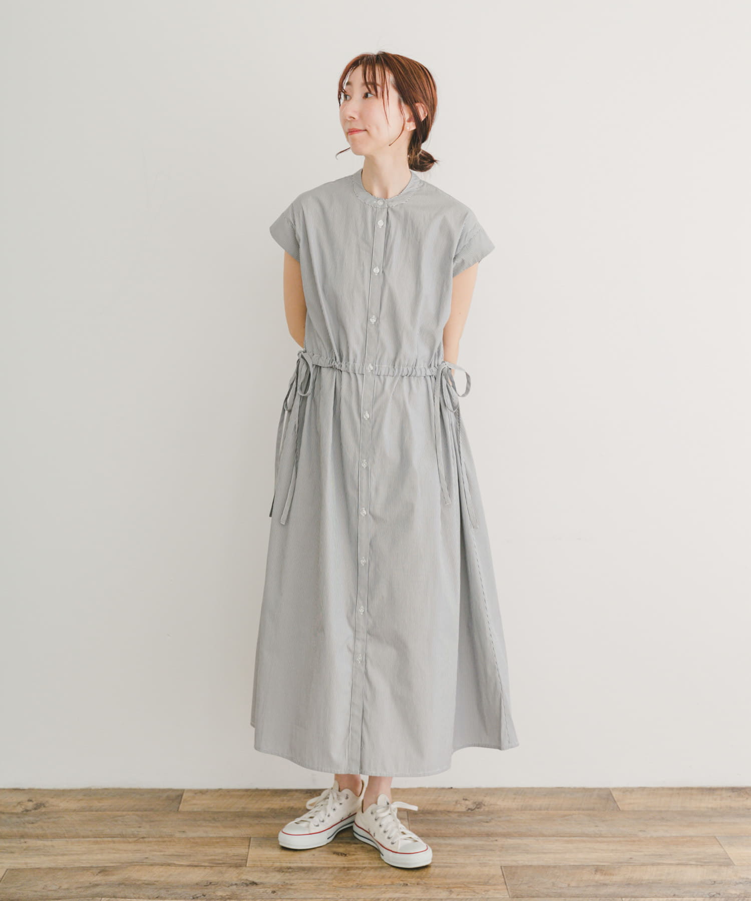 ITEMSウエストギャザーストライプワンピース