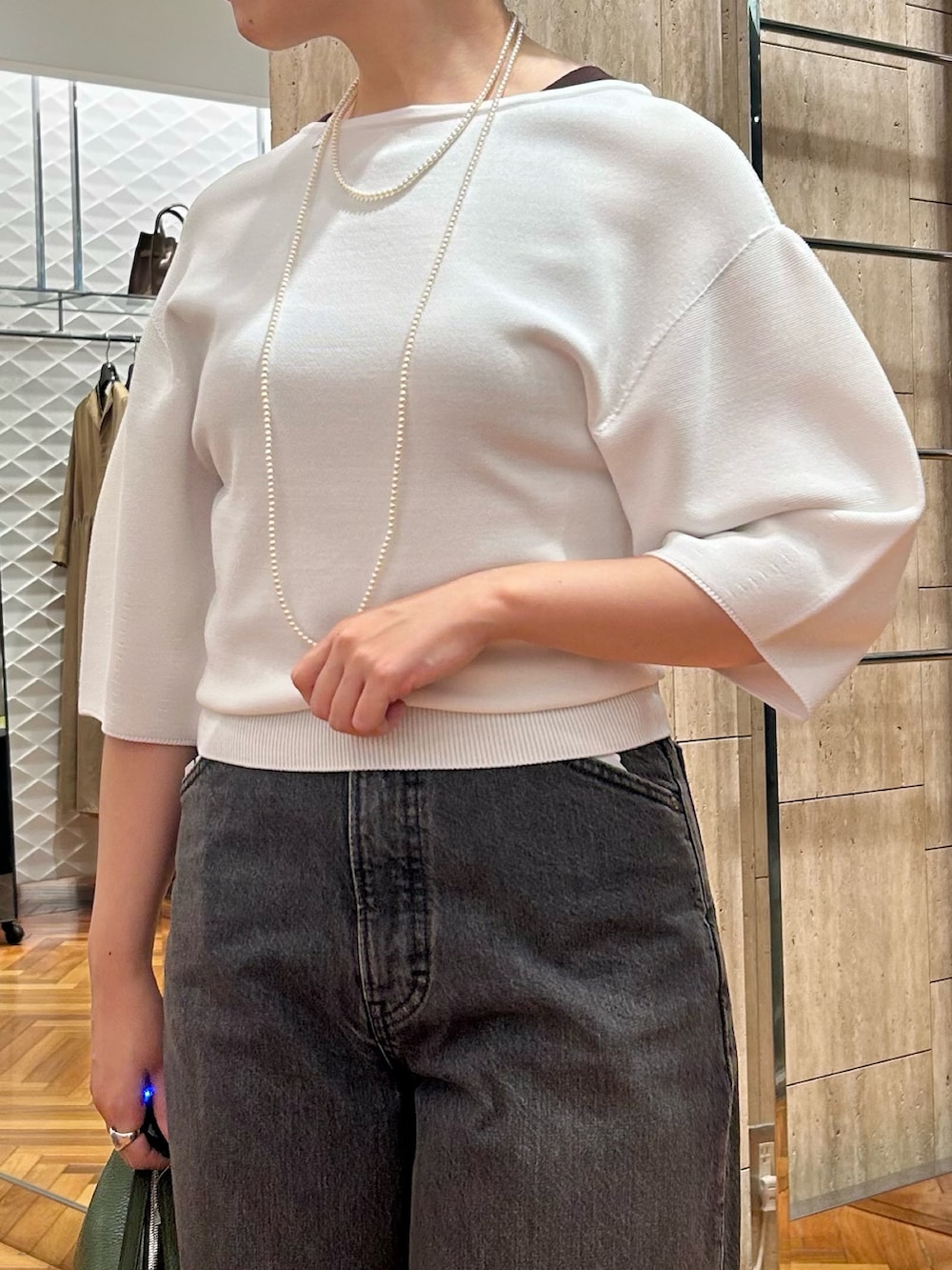 定番のデニム合わせですが、すこしこなれた印象に◎