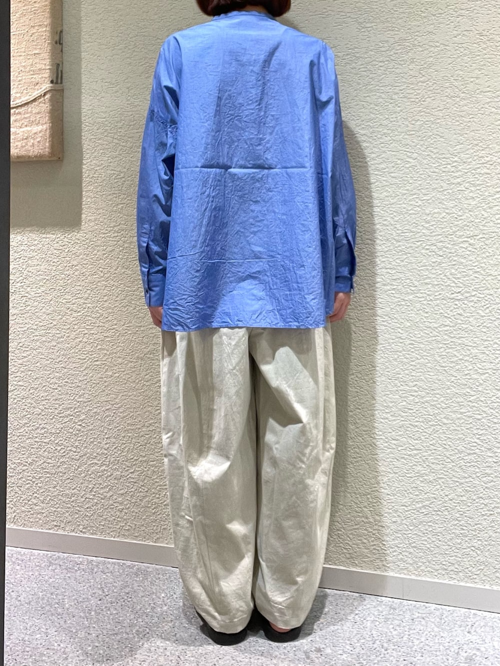ボトムスはアイボリーのコットンボリュームパンツです!軽やかな素材感で、ストレスフリーです!ワイドシルエットが全体をラフにまとめました♪