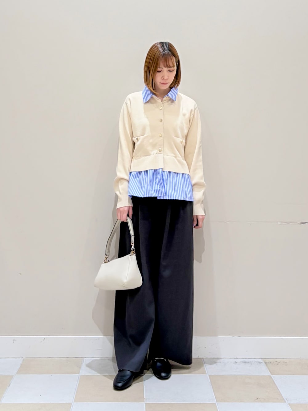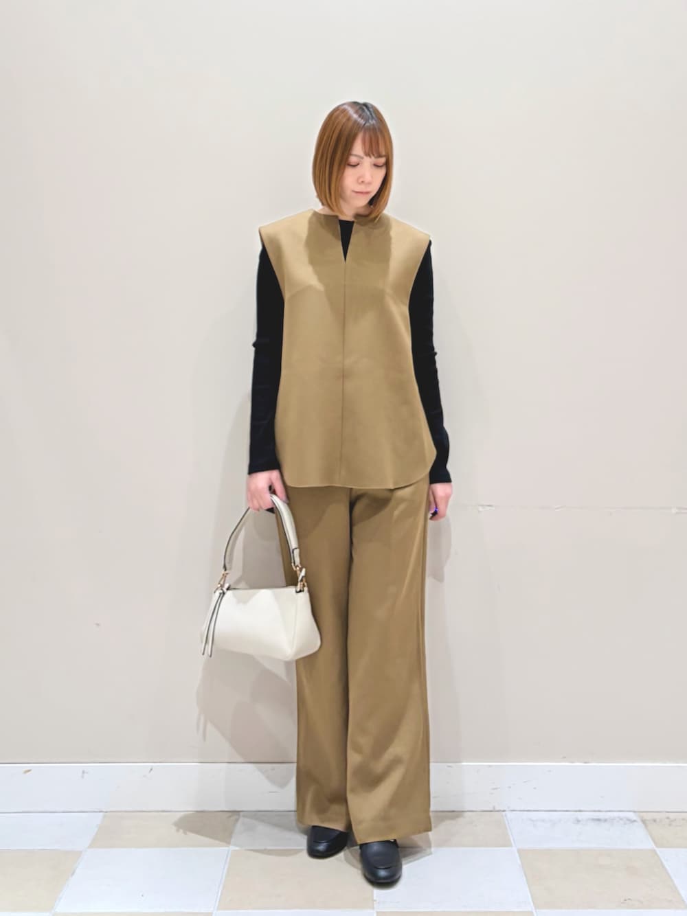 フリルデザインがポイントのオールインワン。さらっと落ち感のある生地が着やすい一枚です!