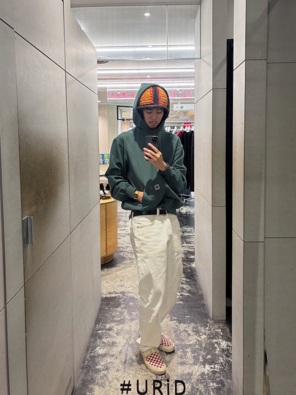 MATRIXのTシャツに薄めの色のデニムを合わせることで、シューズやTシャツの暗めの色を使いつつも、夏の明るさを演出してみました!