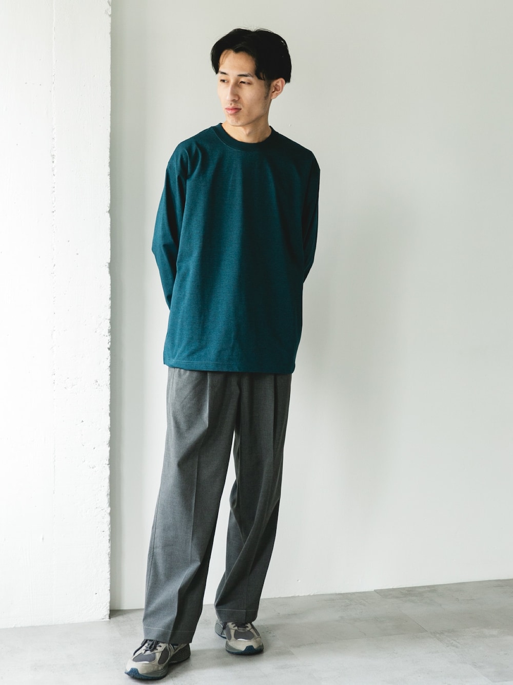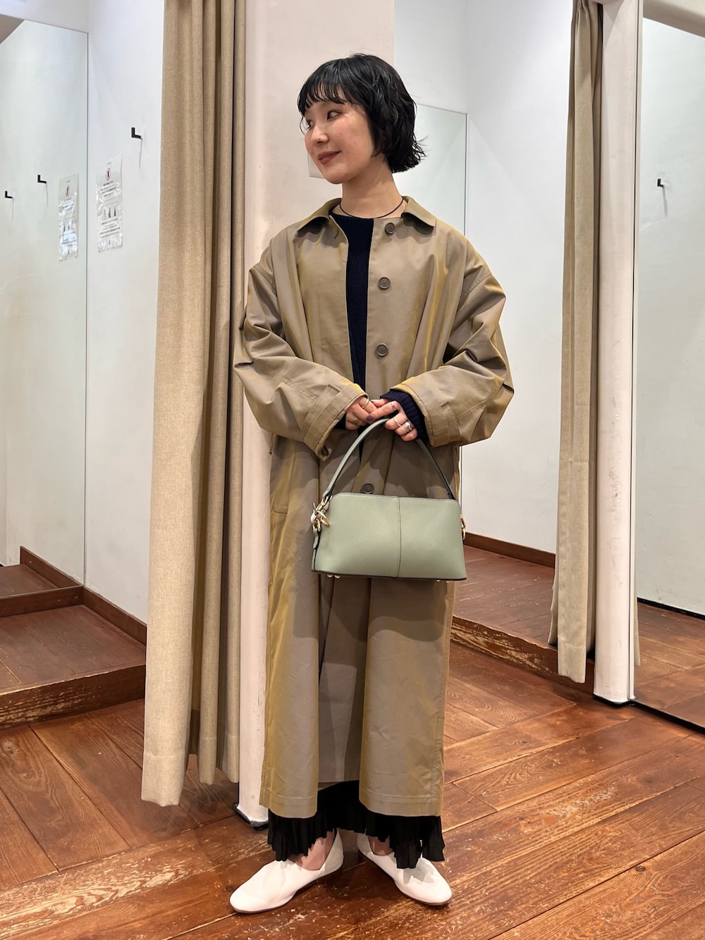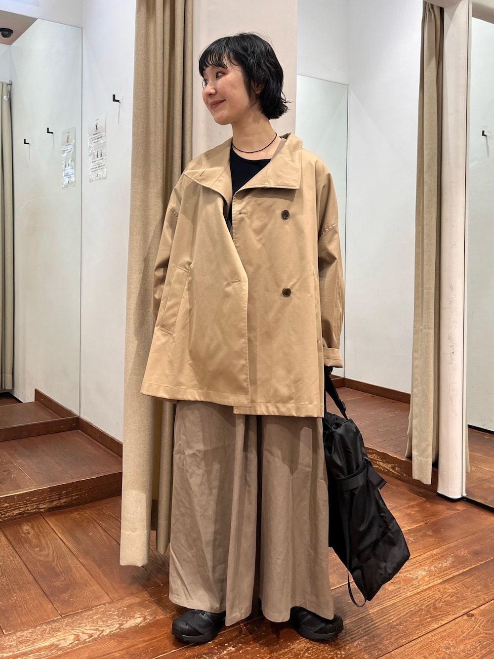 体のラインに沿わず楽ちんですが、女性らしいコーディネートです。
