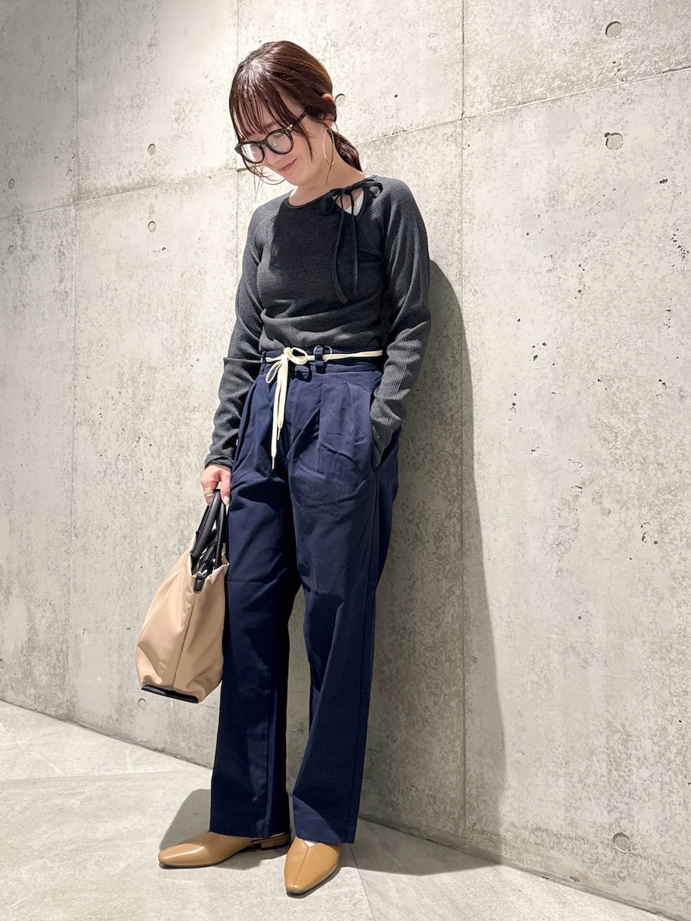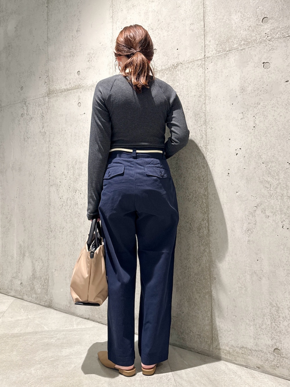 今回は、ウエストの紐ベルトがポイントのチノパンツを合わせた大人カジュアルコーディネートです。
