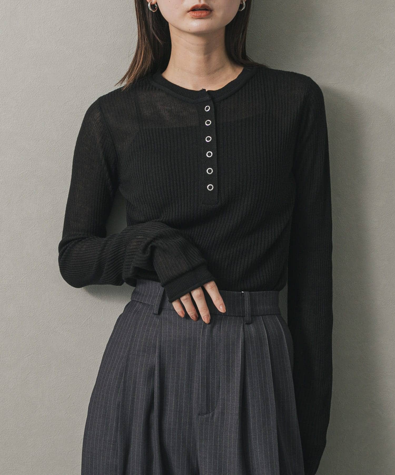 シアーヘンリーネックセーター
