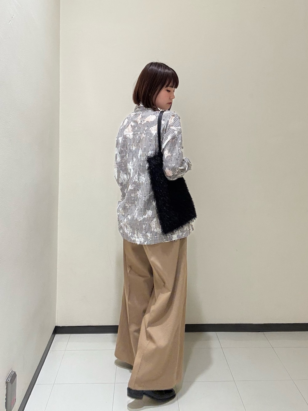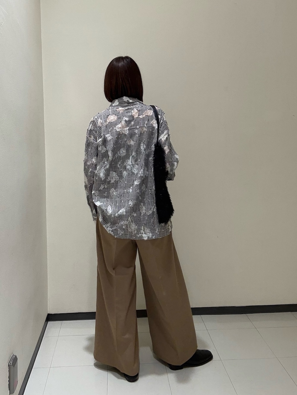 こちらのシャツは一枚で決まるので、その他のアイテムはシンプルにするのがポイントです◎