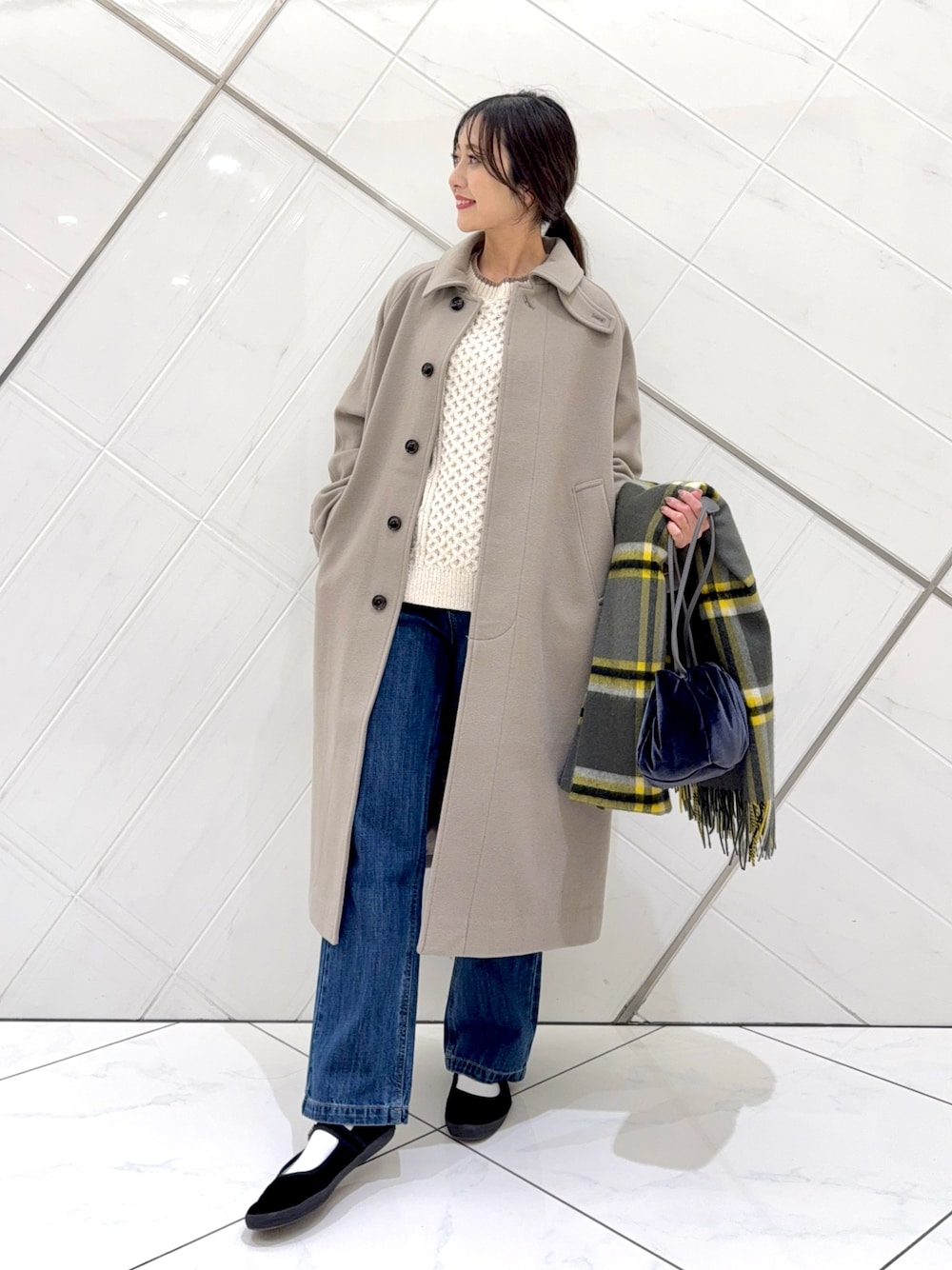 七分袖なのでシーズン長く着ることができ、細かなドット柄が甘くなり過ぎません。