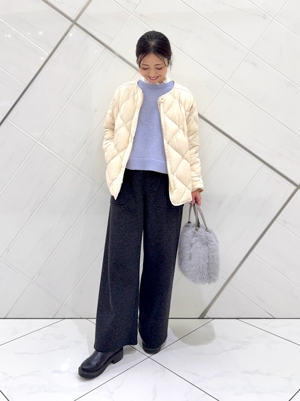 ブラウスは入荷するたびにすぐに完売するアイテムでシワになりにくく、さらっとした軽い着心地です。