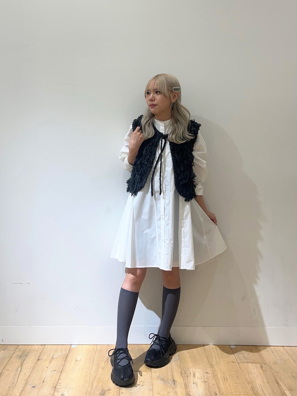 KBFのミニワンピースと昨年から大人気のループニットベストを合わせました!