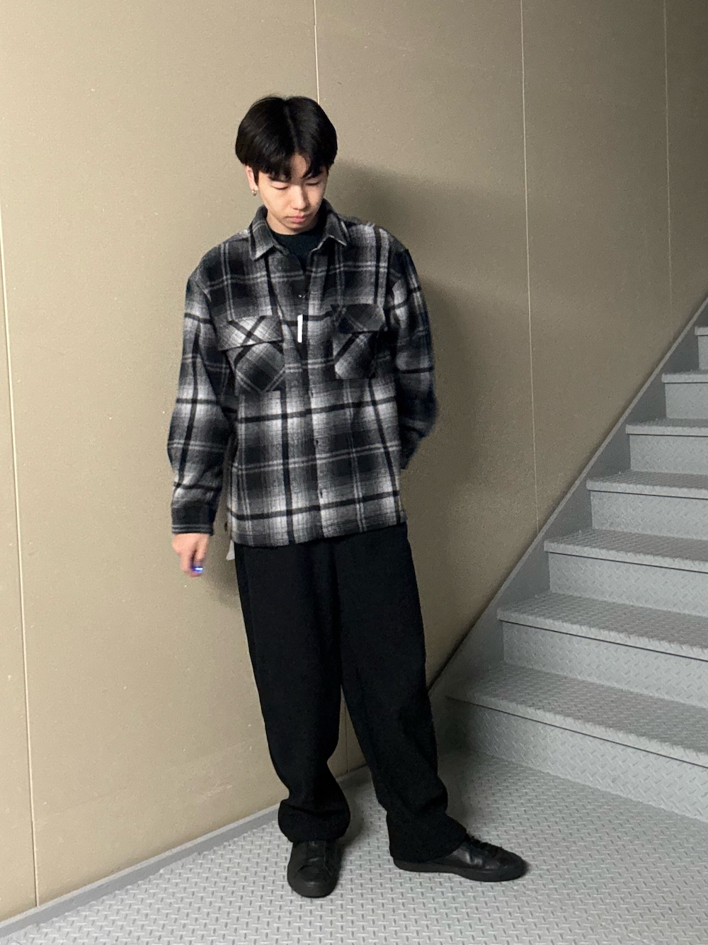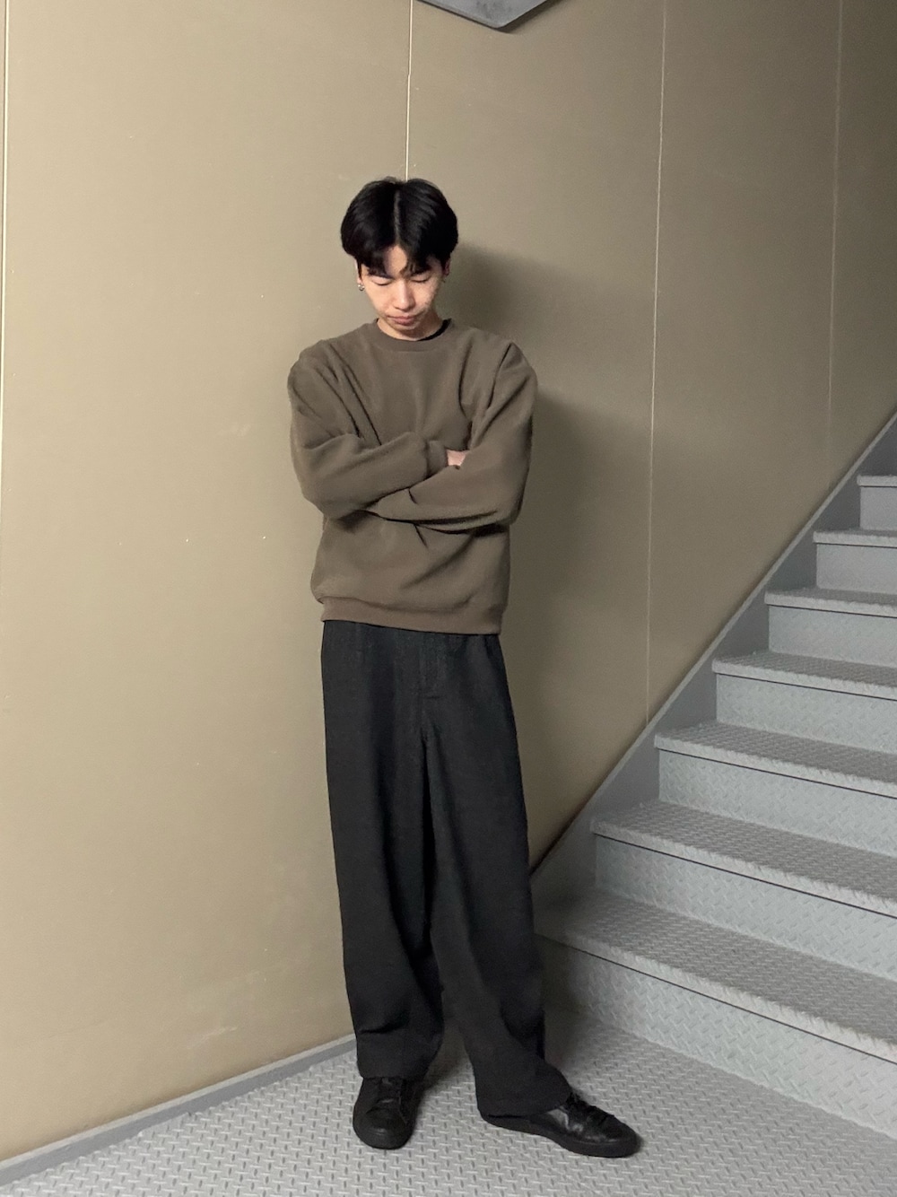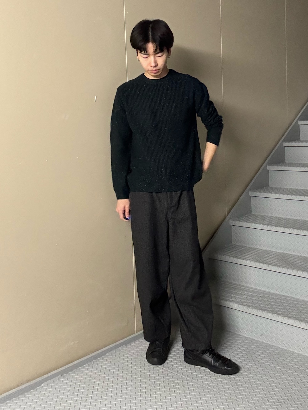 ARMY TWILL のワッフル編みカーディガンを羽織り、URBAN RESEARCH Sonny Label のシンプルなTシャツとワイドパンツを合わせたナチュラルコーデ。ゆったりとしたシルエットとやわらかいベージュカラーがリラックス感を引き立てています。