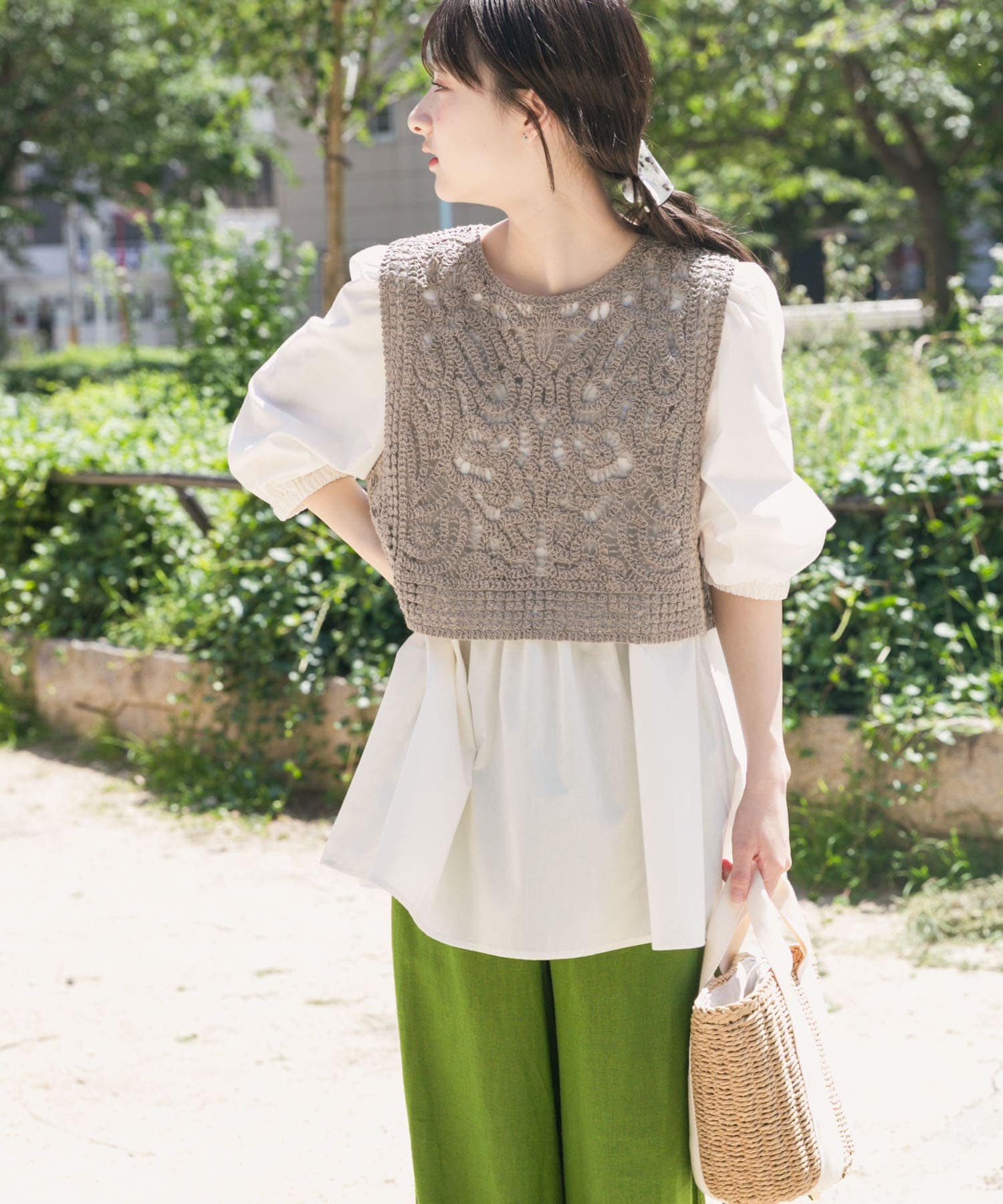 リネンレーヨンワイドパンツとあわせて楽ちんコーデにしました♪