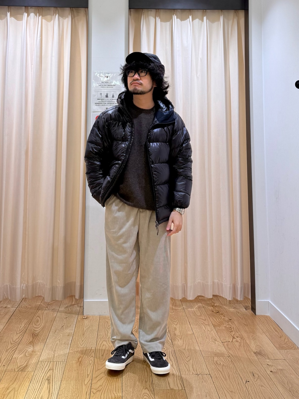 膝がしっかりと隠れる程のルーズな着丈、EKALではウエストにバックギャザーを施しドローコードによりベルトレスでイージーにご着用頂けます。