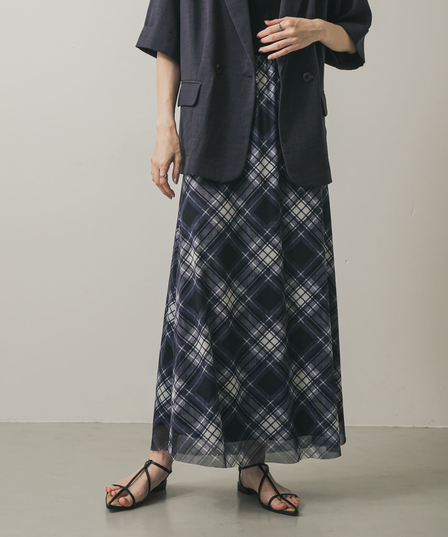 SENSE OF PLACEシアーチェックスカート- カラー: