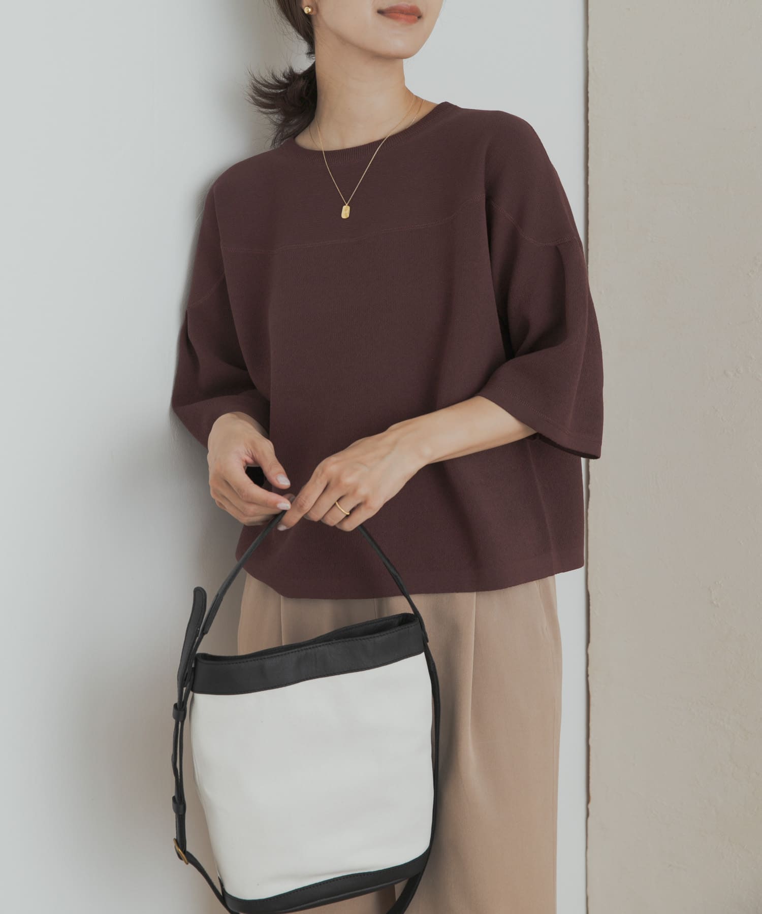 ボルドーカラーがコーディネートをぐっと秋らしくしてくれるこちらのニット。