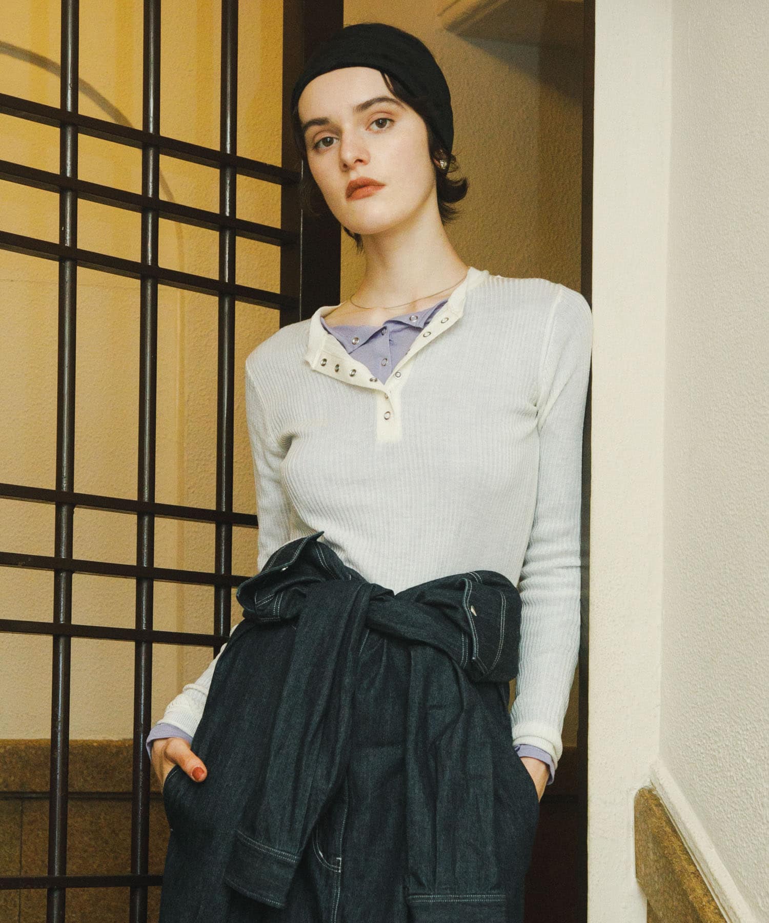 上のボタンはあけて抜け感も◎