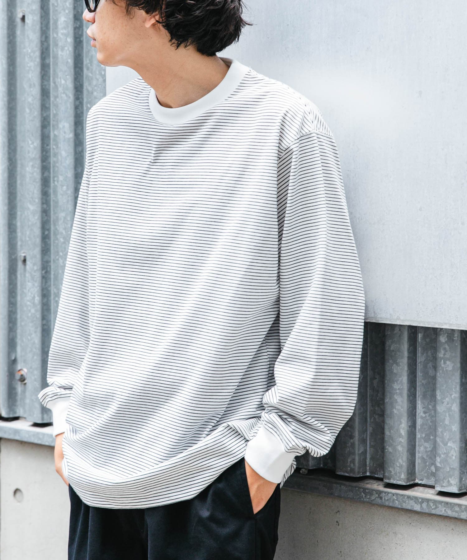DOORSFORK&SPOON プレーティングボーダーロングスリーブTシャツ- 着用カラー: