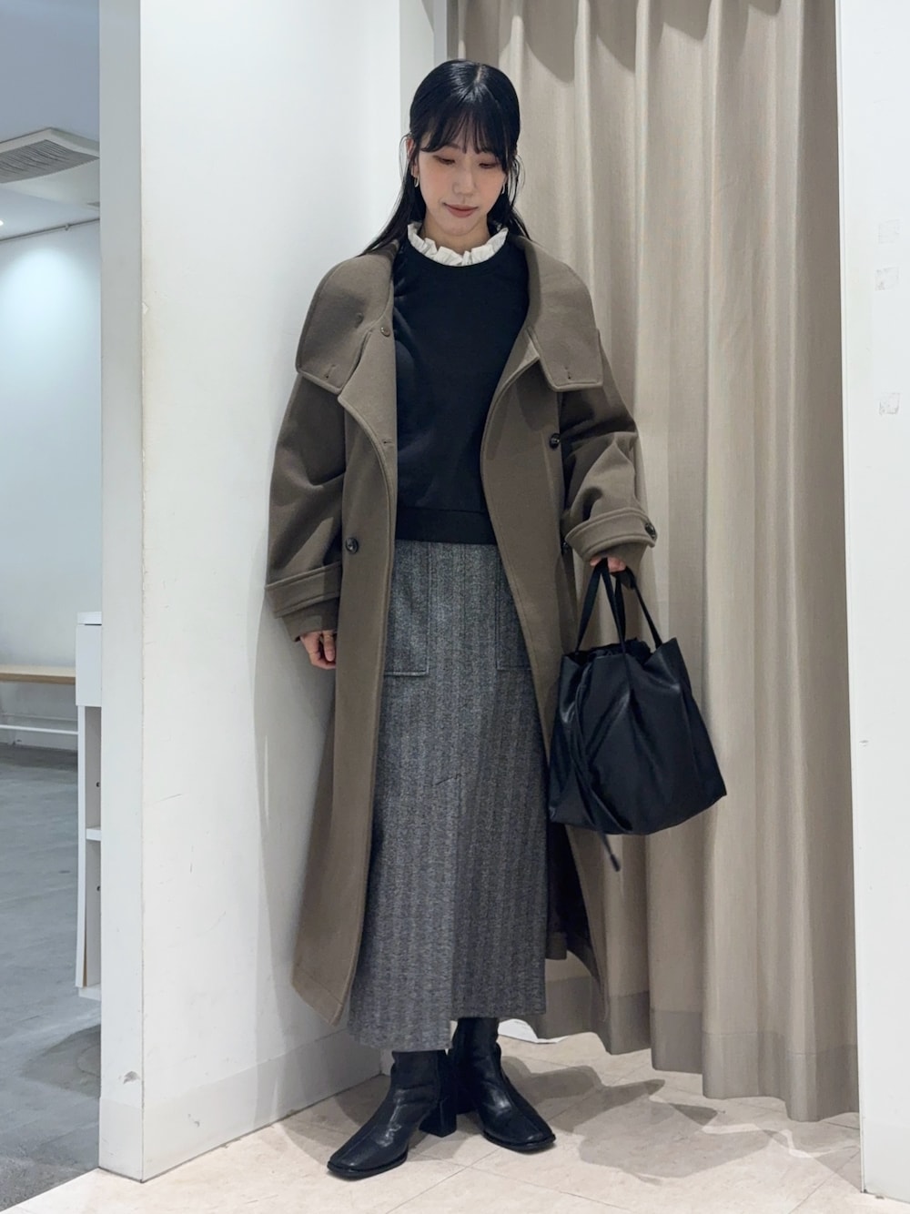 ボタンを開けて首元と白のインナーを見せて、抜け感を作るのがポイントです◎