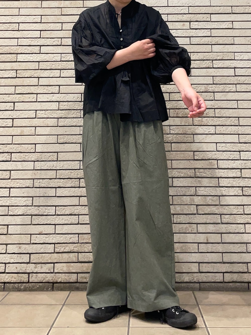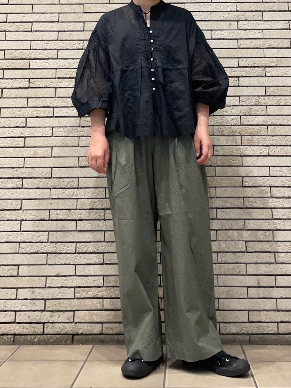 ピンタックやギャザー使いがエレガントな印象です。袖口にゴムが入っているのでグググっとまくって袖のボリュームを出して着用いただくのもおすすめです。