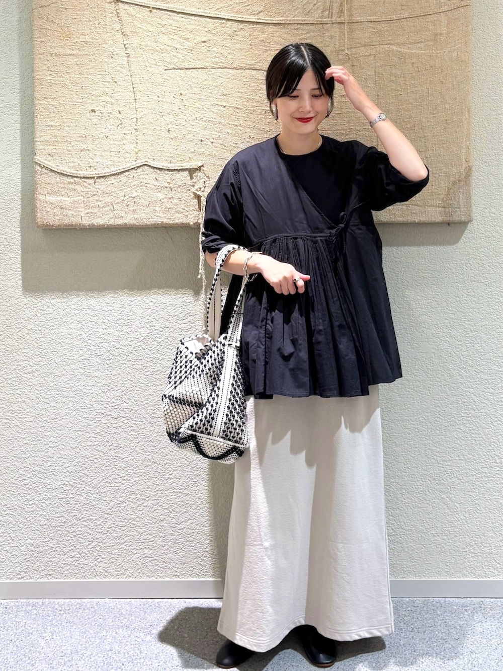 ・ブラック×ライトベージュで大人のコントラストを表現