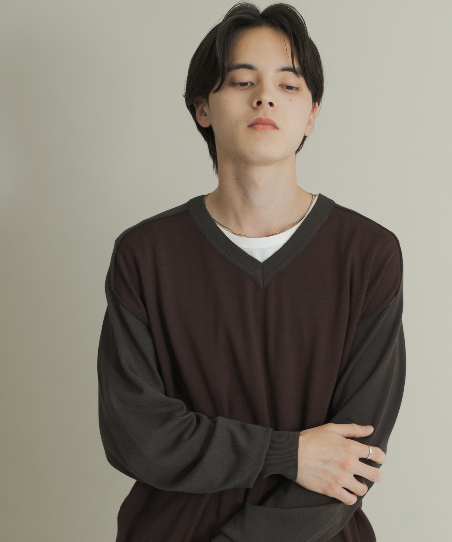 SENSE OF PLACEハイショクVネックニット- 着用カラー: