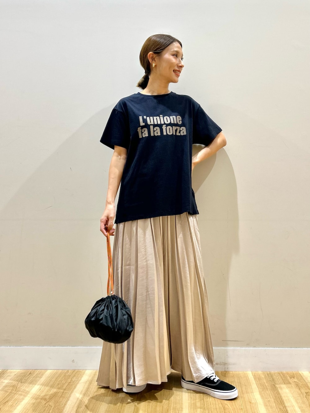 中に合わせたロゴTはコンパクトめなサイズ感で