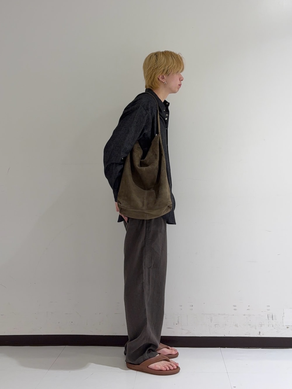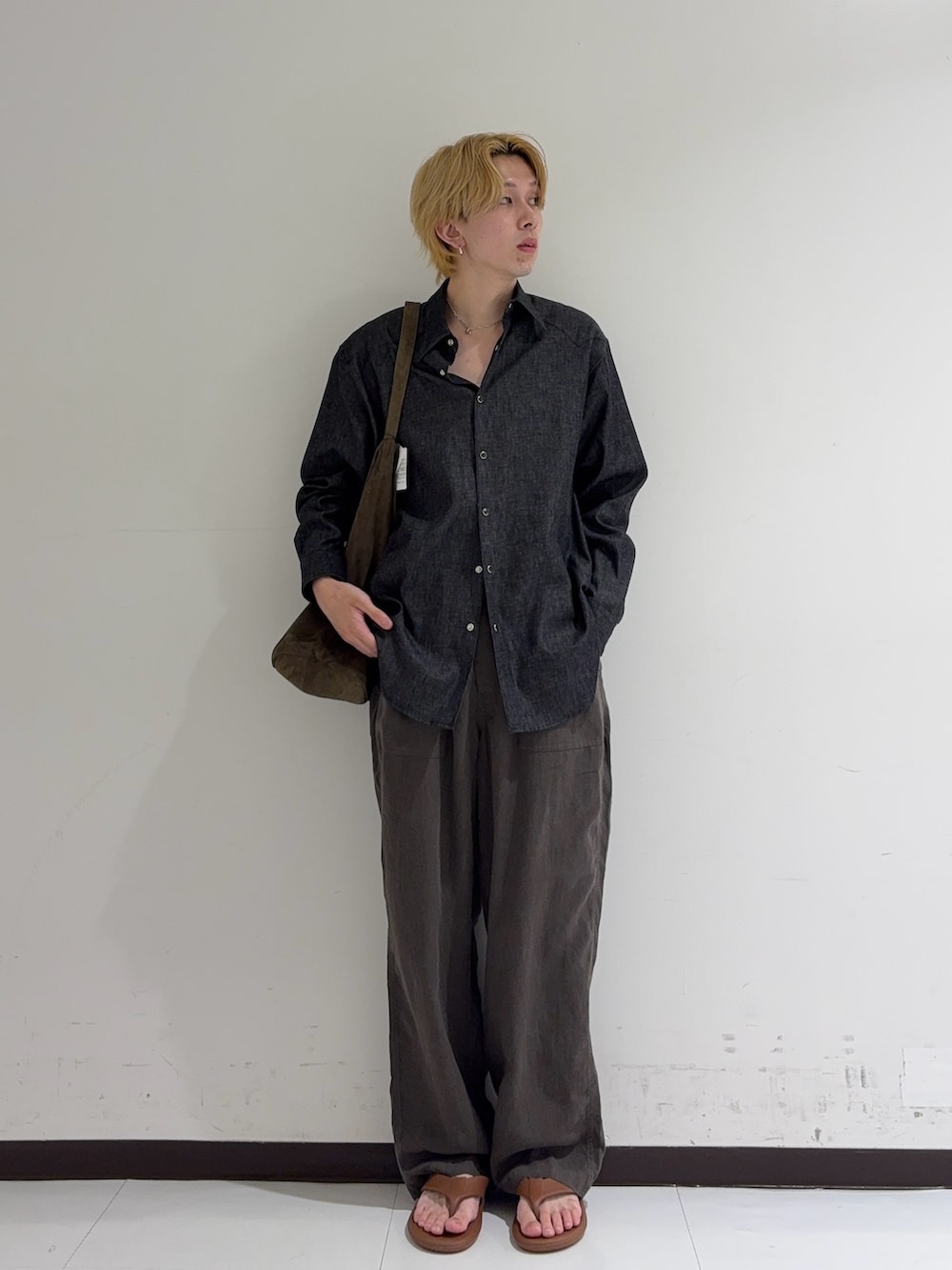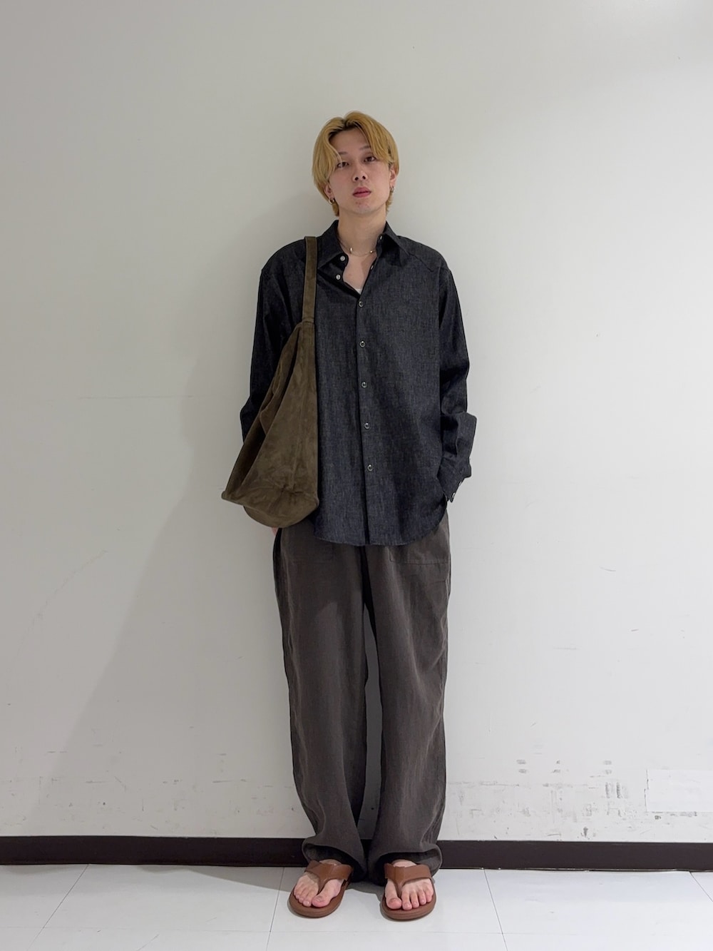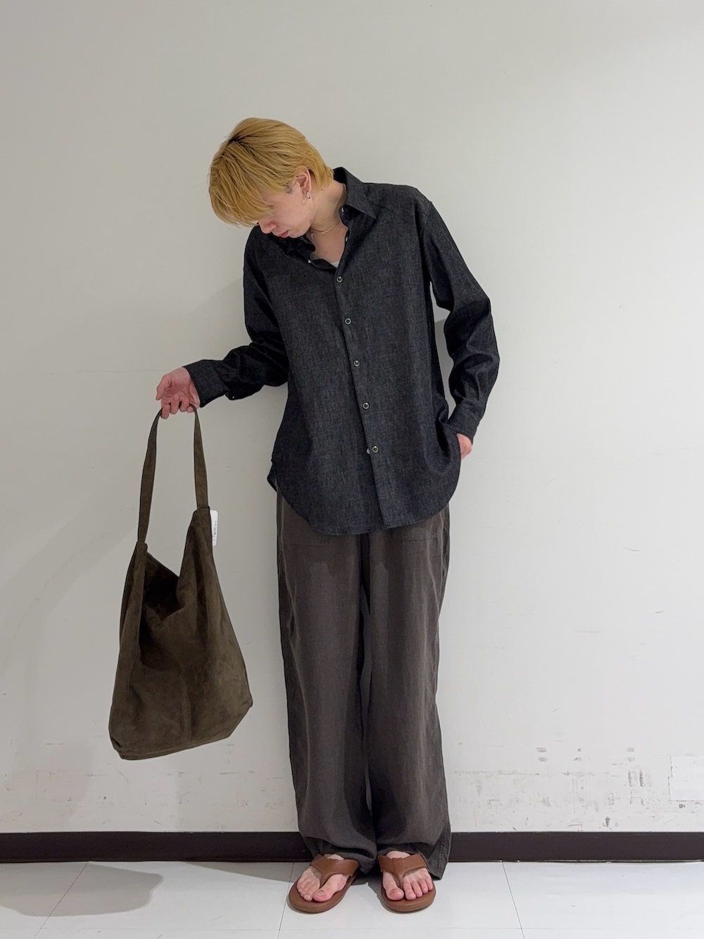 個人的にシャツとパンツを緩めに合わせたサンダルコーデは抜け感が出てすごい好きです。